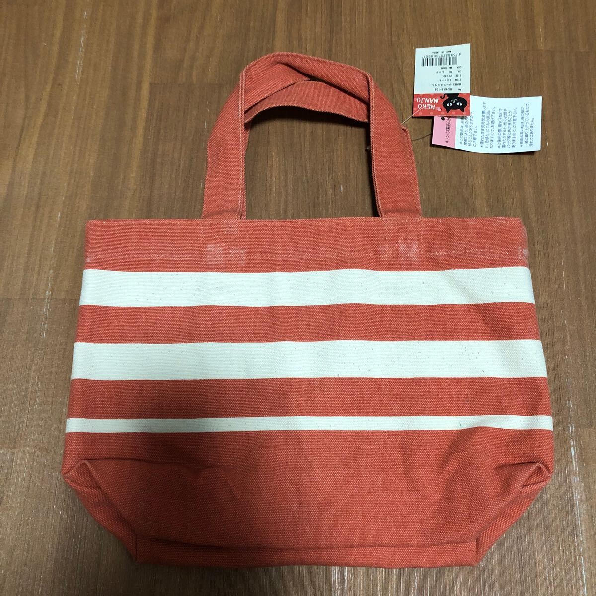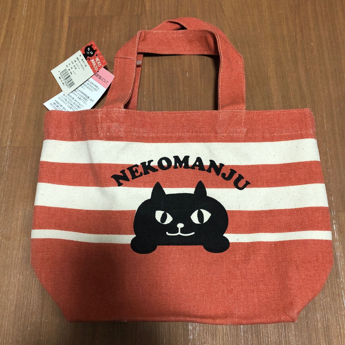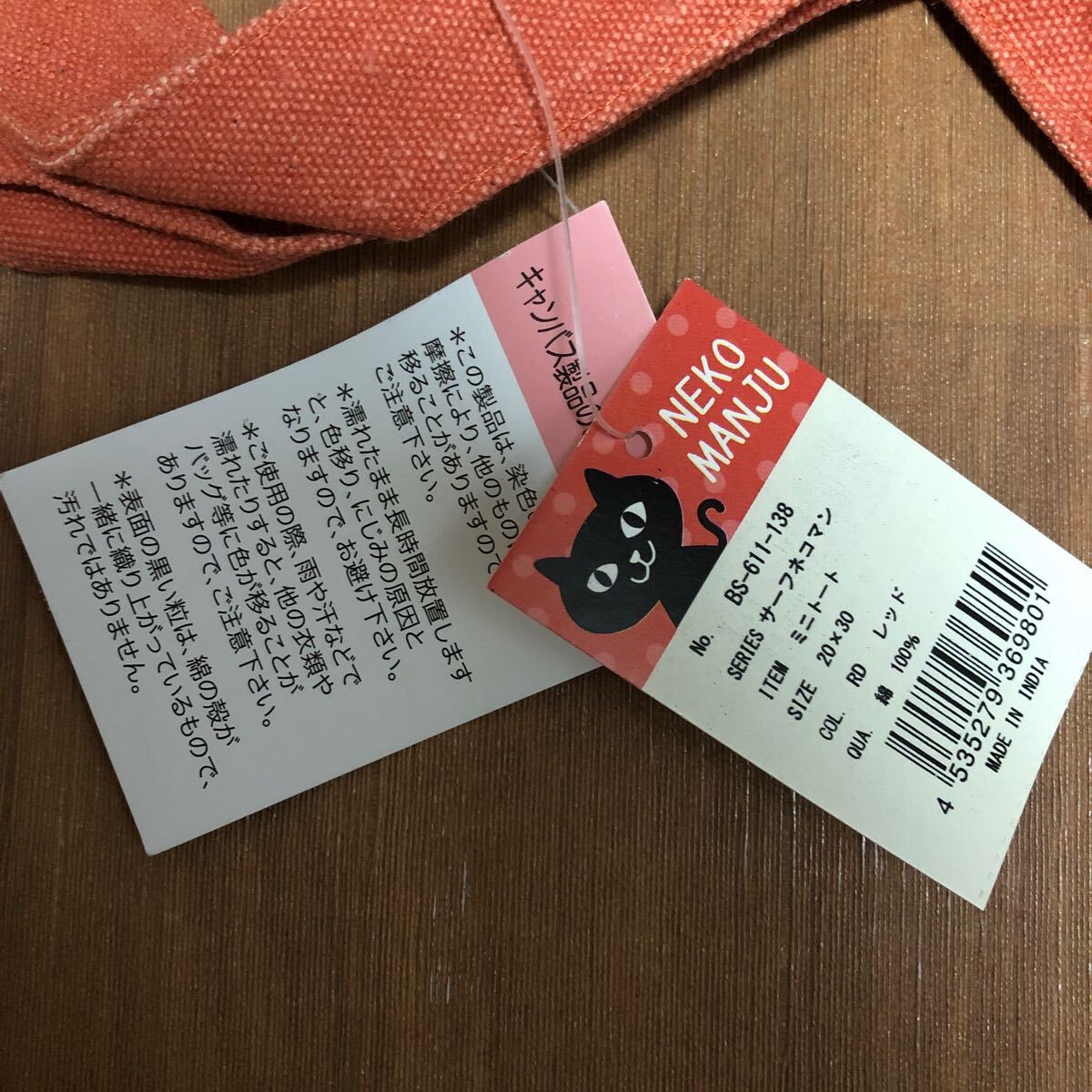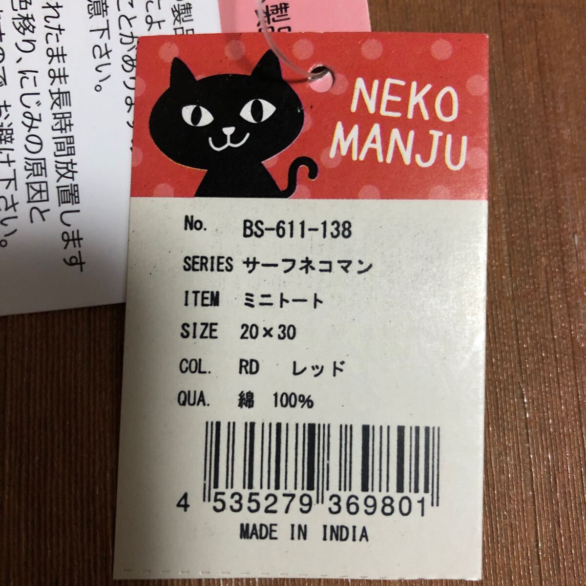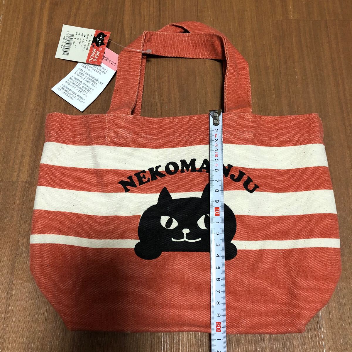 黒猫 NEKOMANJU 帆布バッグ 手さげバッグ ねこ柄 ネコ ねこ ストライプ レッド系 タグ付き未使用品