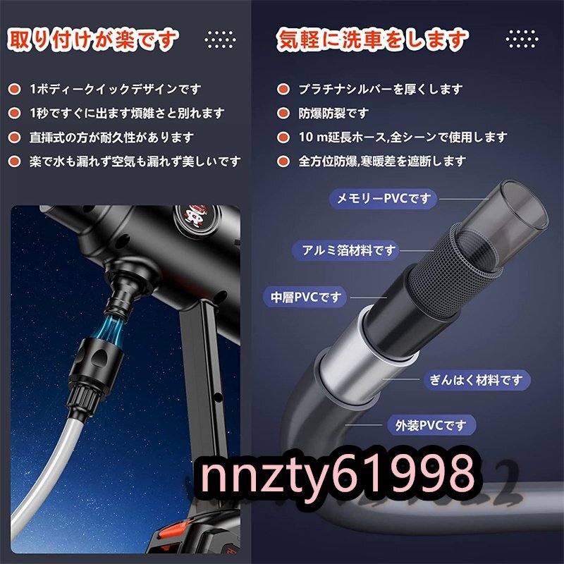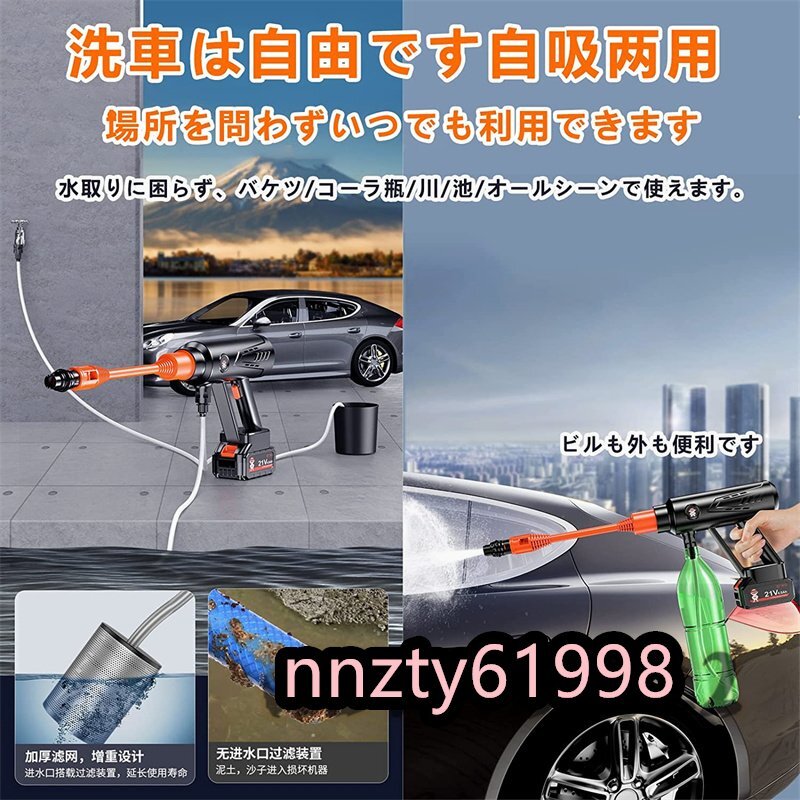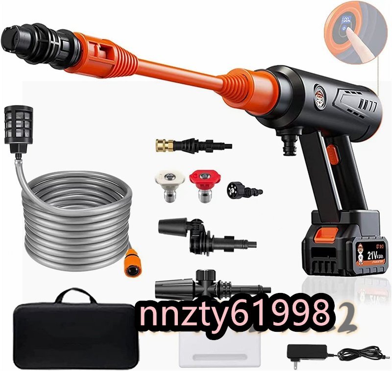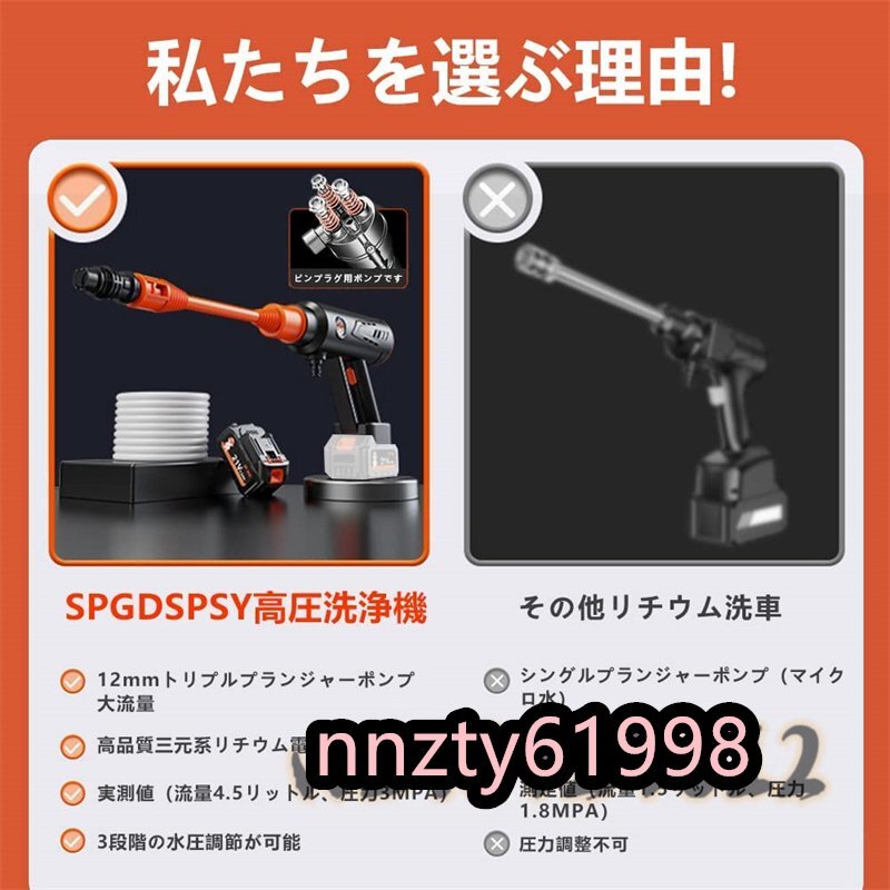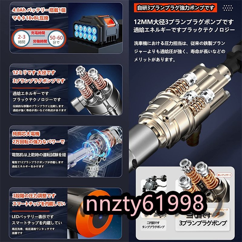 新作!コードレス高圧洗浄機 充電式 5Mpa 強力 静音 LCD電源表示付き/3つのギアモード切替可 ポータブル マキタ18vバッテリー互換
