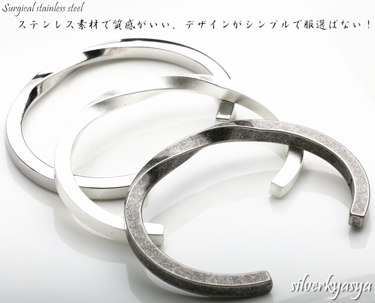 ステンレス素材で丁寧に作られた質感の良いモダンアートなバングルです。