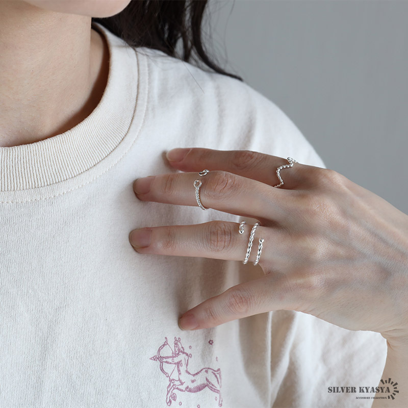 細身で洗練されたスタイルのシルバーリング。ツイストや葉っぱをモチーフにしたデザインなど、指先にさり気なく個性を宿します。デザイン違いの全5タイプのバリエーションから選べます。