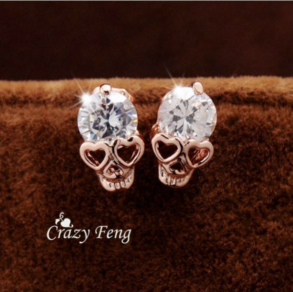 LRM1517★イヤ ピアス ピンク スカル 骸骨 ガイコツ ドクロ メンズ レディース 一粒ダイヤ ストーン キラキラ 輝き