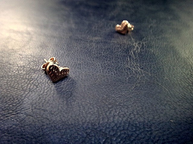 大きさ7x8㎜ふっくらした表面にラインが入ったデザインのマグネットイヤリング(ピアス風)