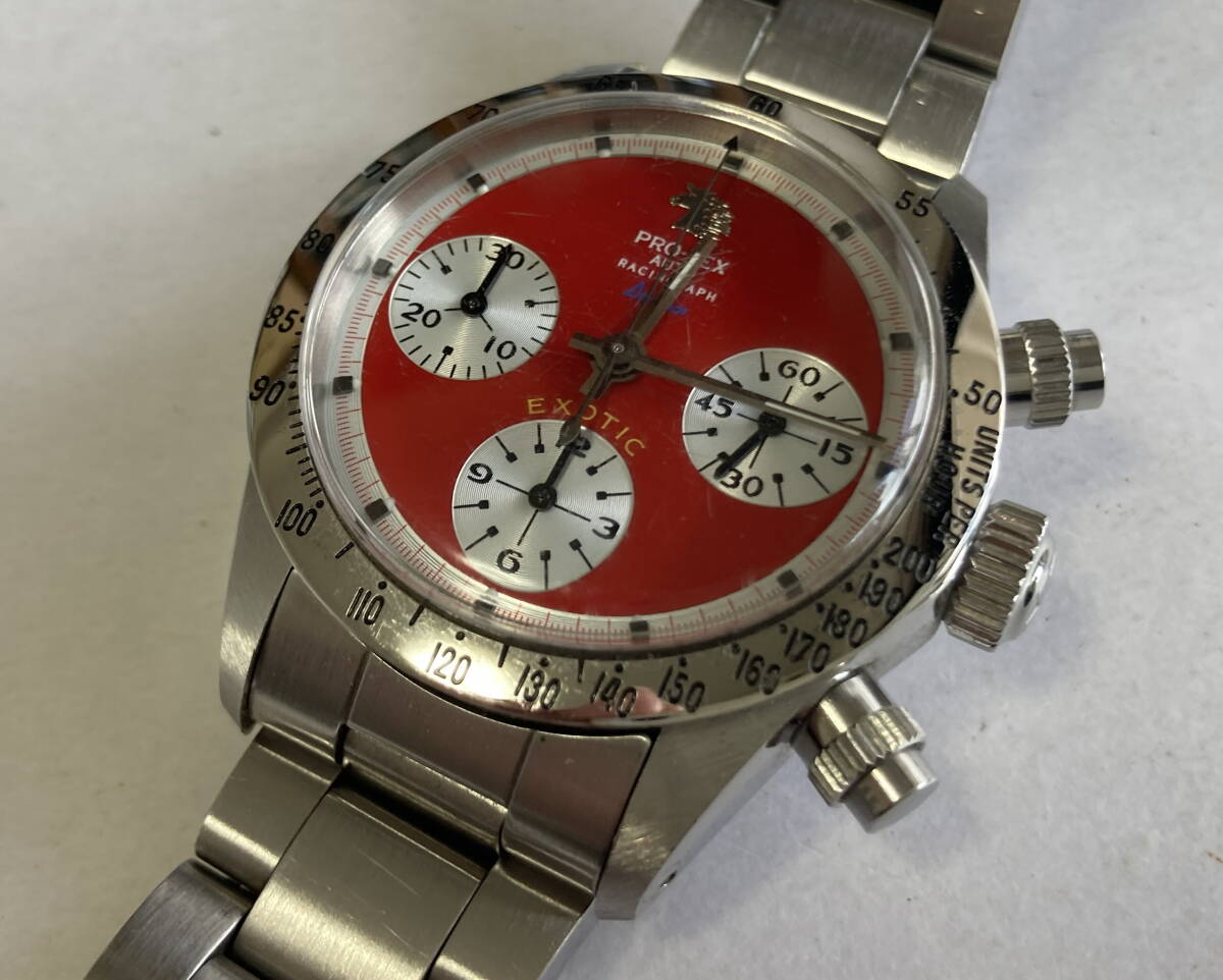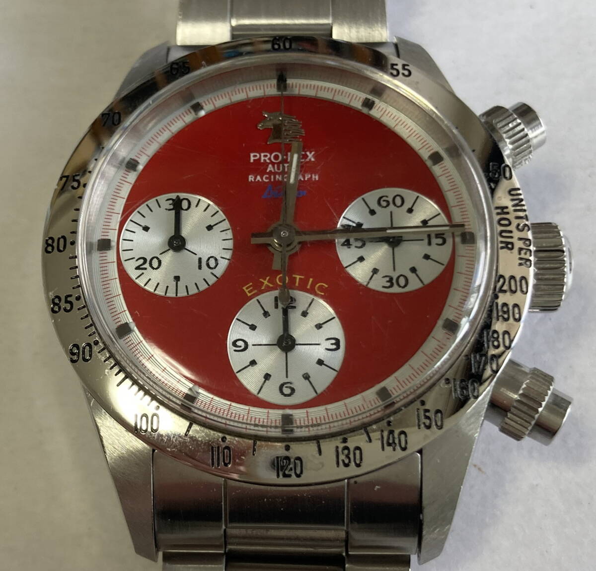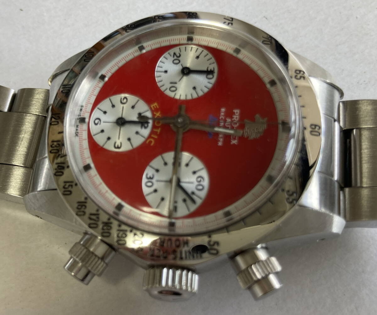 稀少なPRO-LEXRACINGRAPH DINO赤白文字盤です。