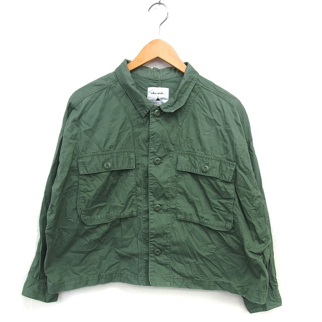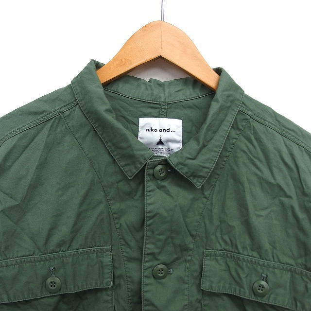 ニコアンド Niko and.. ミリタリー シャツ ブラウス ステンカラー ワイド コットン 綿 長袖 L カーキ /NT7 レディース