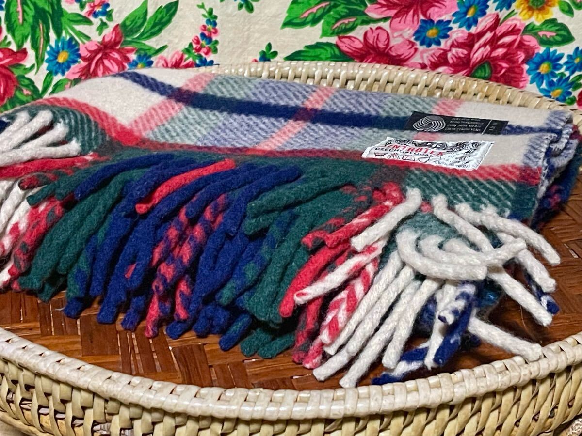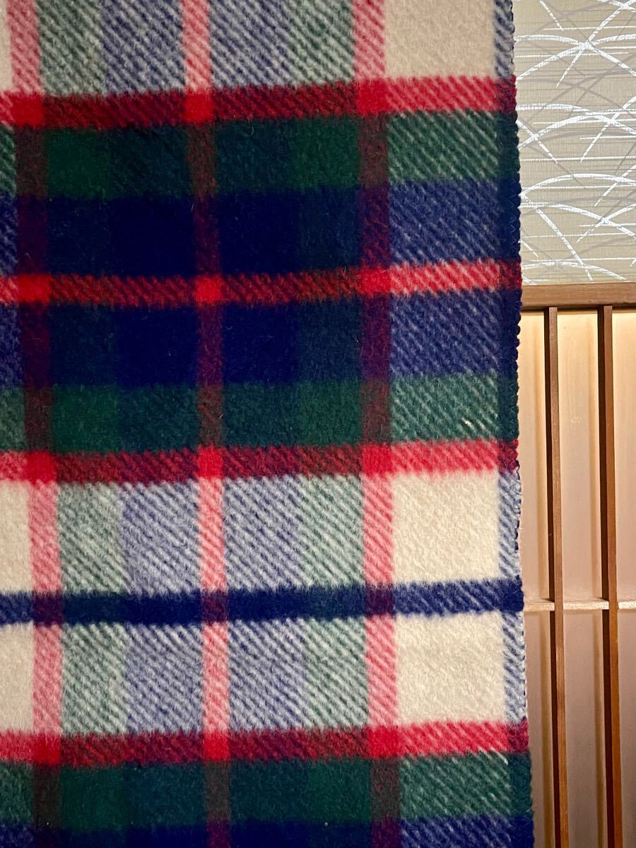 タータンチェックがかわいい、レトロなひざ掛けです。