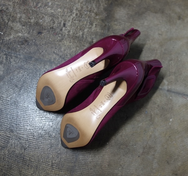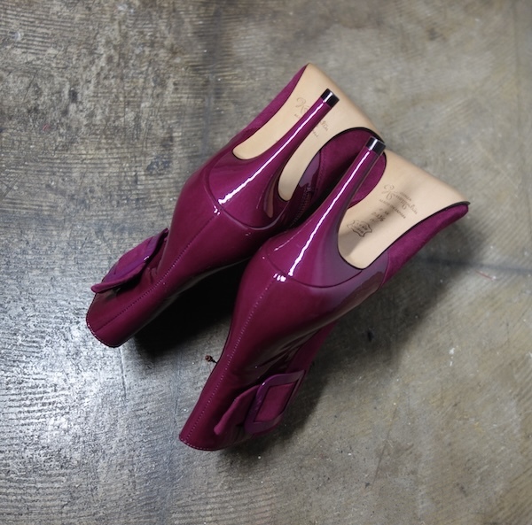 本革(スエード/毛足の短いベルベットの様な上品な雰囲気)×エナメルのコンビが美しいとても素晴らしいアイテムです。