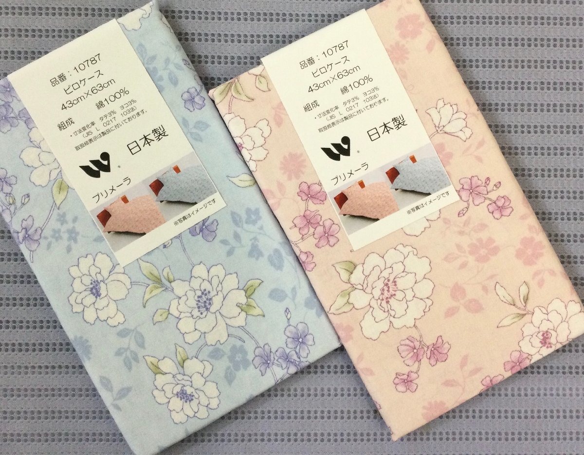 ◎ピロケース(枕カバー)◆43x63㎝◆綿100%・両面同生地使用◆入れ口、ファスナー◆日本製◆ブルー系★送料185円