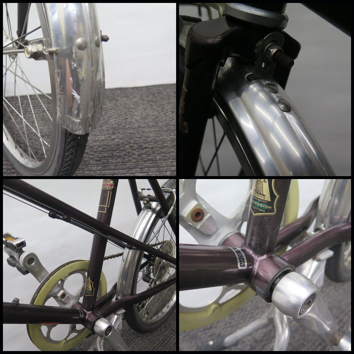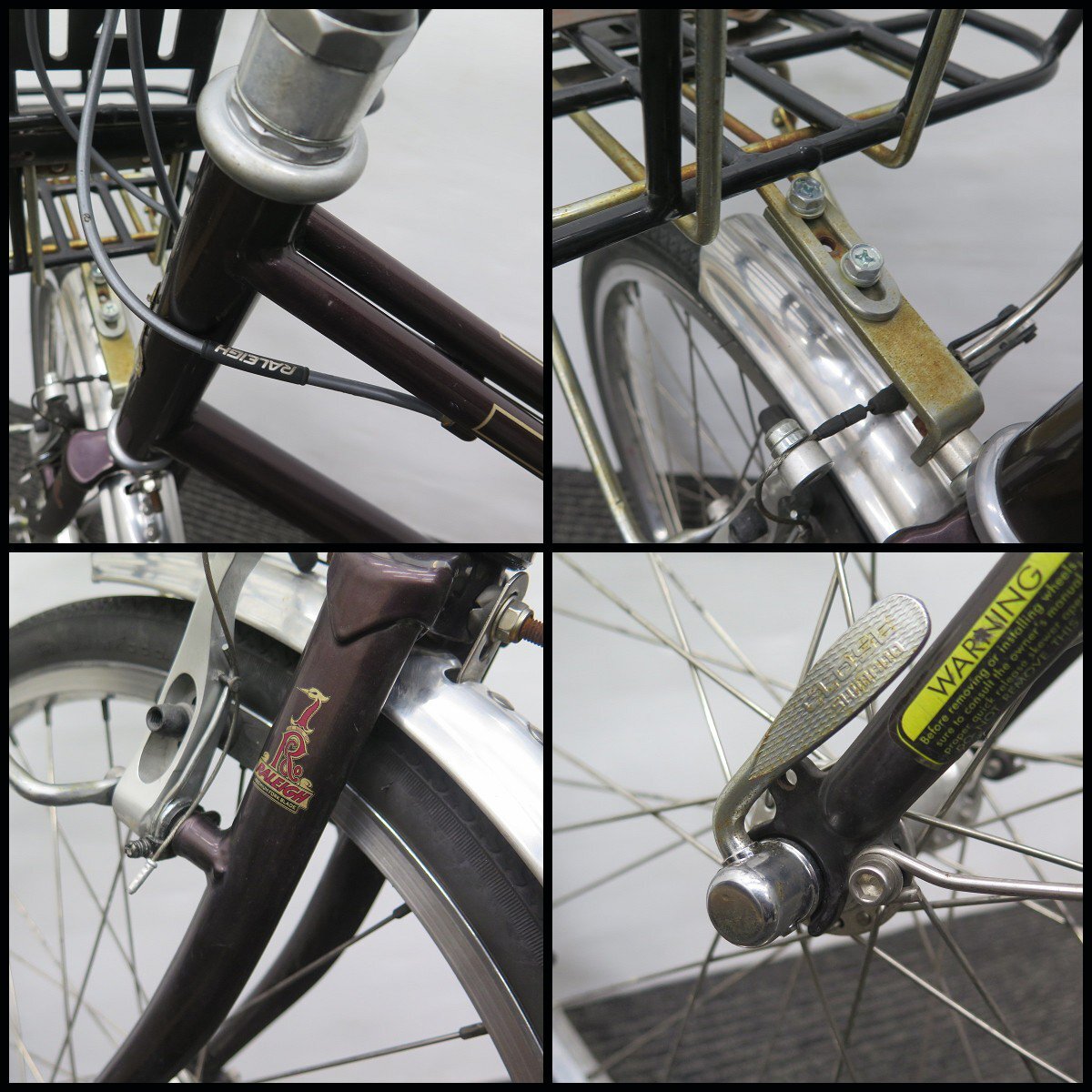 △RALEIGH/ラレー ミニベロ RSW Sport Mixteの出品です。 ○ミニベロ メーカー:RALEIGH/ラレー モデル:RSW Sport Mixte フレームサイズ:470mm トップチューブ:510mm 外形寸法(約):全長1500mm×幅550mm×高さ930mm 重量:約14.4kg ※寸法は当方採寸となりますので多少の差異はご了承ください。 細かな擦れキズや汚れ、小サビやブレーキパッドの劣化等ございますが 凹み等の目立つようなダメージは見受けられません。 画像を多く掲載しておりますので、 各種パーツ、その他コンディションなどにつきましては 画像よりご判断お願いいたします。 後輪のホイールに若干の振れを感じます。 簡易的な走行を行い、ギアチェンジはスムーズに行えました。 ブレーキパッドに劣化がありますので 使用していくうえでの消耗品(タイヤ等)の交換が必要な場合は 部品調達含め、落札者様でご用意ください。 ※当方で販売証明書の発行は可能ですので 必要な場合は落札後にお申し付けください。 ご不明な点がありましたら、お気軽にご質問下さい。 ●[落札後、発送に関して詳細事項(家財便)] アートセッティングデリバリーの「家財おまかせ便」にて発送予定です。 (発送予定サイズ(mm/約):全長1500mm×幅550mm×高さ930mm) ※一部地域によっては発送をお受けできない場合がございます。 出品期間内、事前にご質問欄よりご確認の上、ご入札をご検討お願いします。 また、直接のお引取りも歓迎いたします。 ●[送料について] アートセッティングデリバリーの「家財おまかせ便(Dランク)」で発送予定です。 (※大阪府門真市より)※詳しくは運送会社の公式サイトをご参照下さい。 【※元払い発送のみ/着払い不可】 ※家財便はお支払い完了後の予約制となっております。 また現在大変込み合っており、出荷までに日数がかかりますので、 事前にお問い合わせ頂きます様よろしくお願い致します。 ※沖縄・離島など一部配送出来ない地域がございますので、 ご入札前に一度店舗までお問合せください。 ●[消費税について] 落札価格と送料に対して消費税をお預かり致しますのでご了承ください。 |