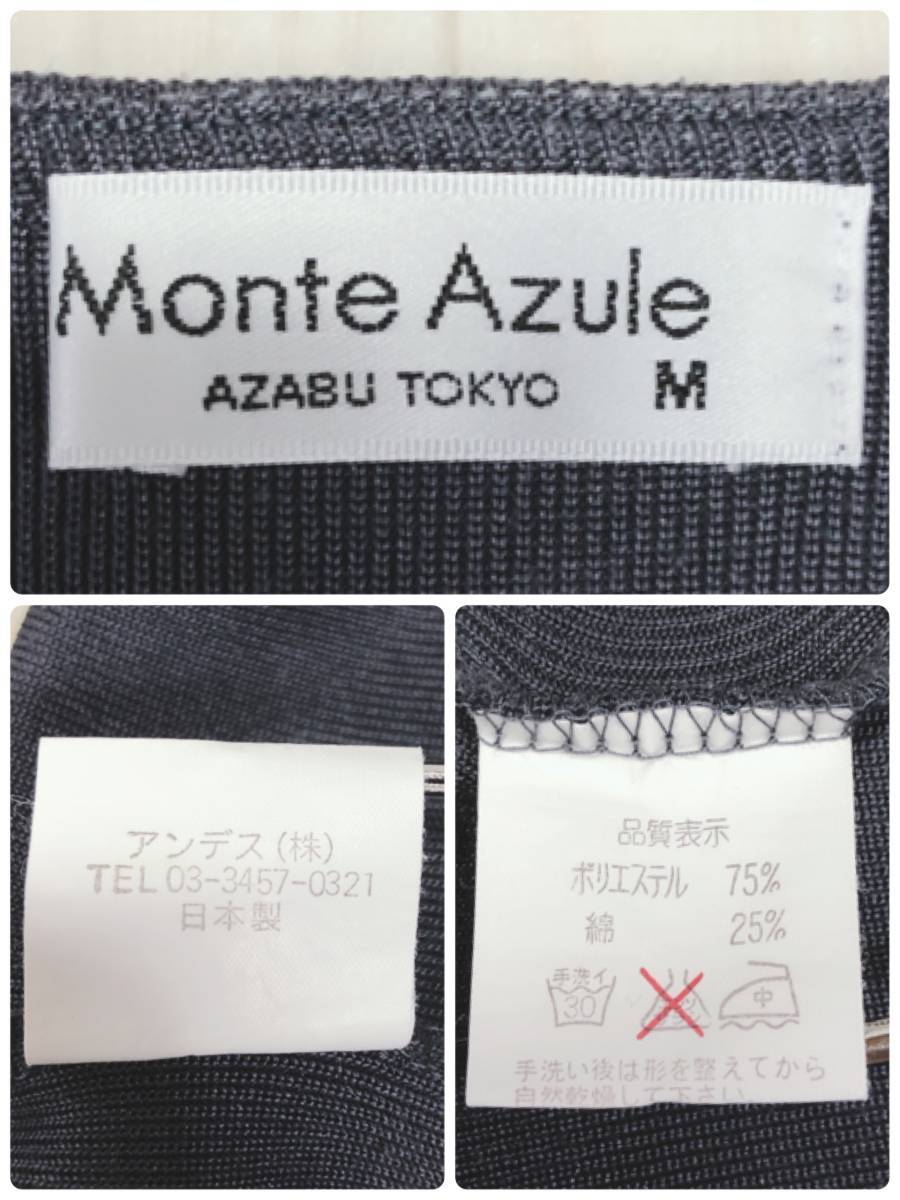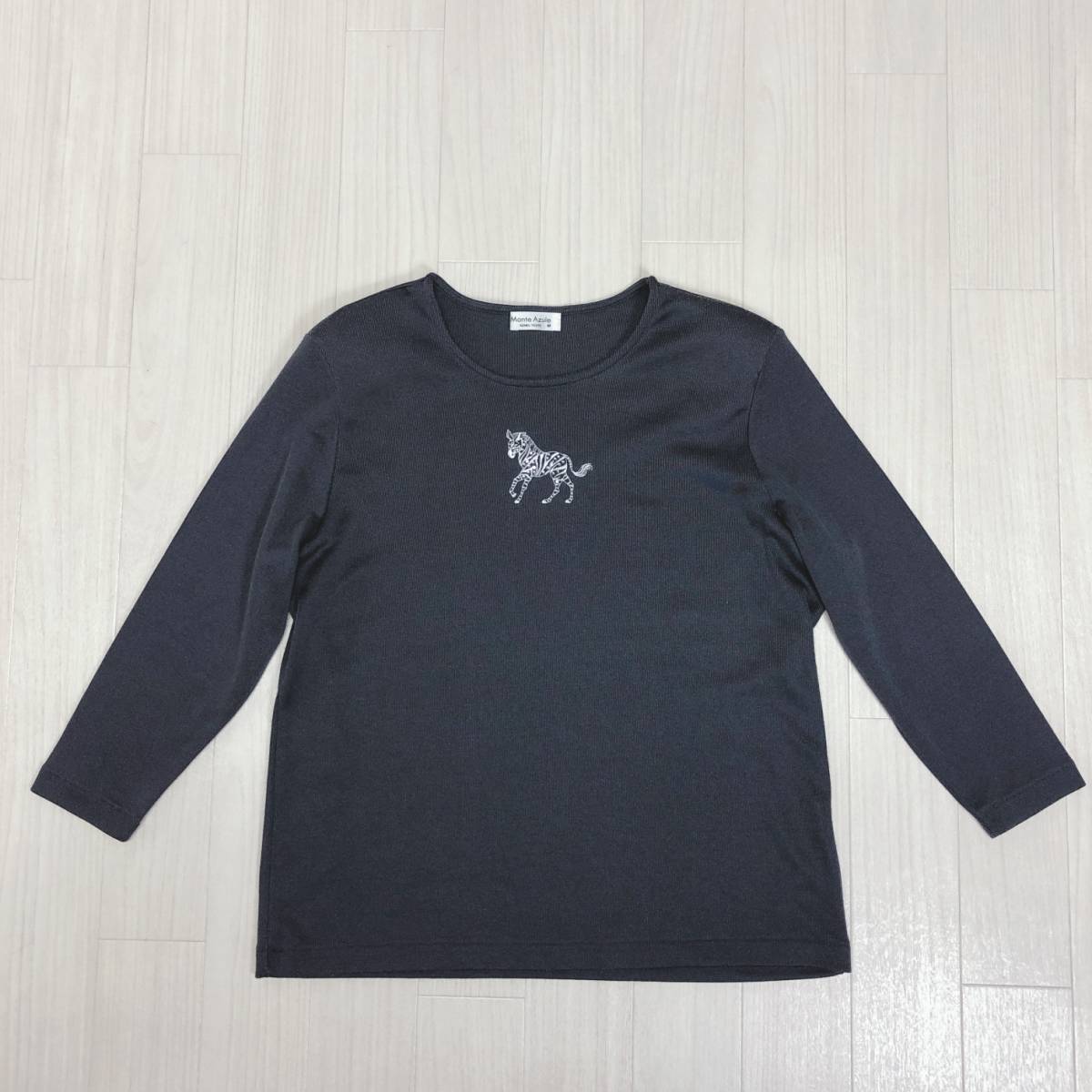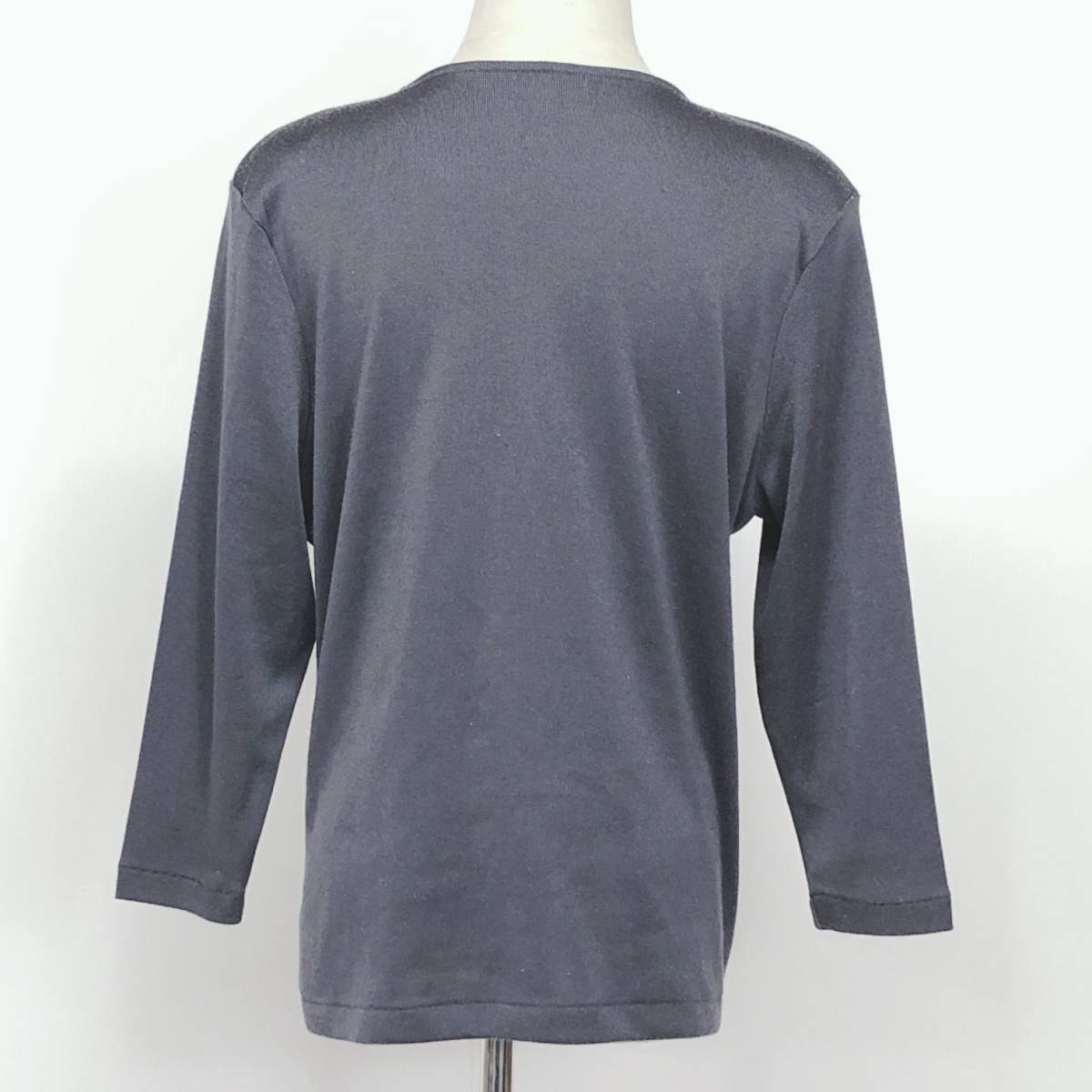 YX464 Monte AZule レディーストップスプルオーバー七分袖 肩パッドラインストーン Mサイズ グレー 灰 ロゴ刺繍 綿素材含 シンプル 春夏秋