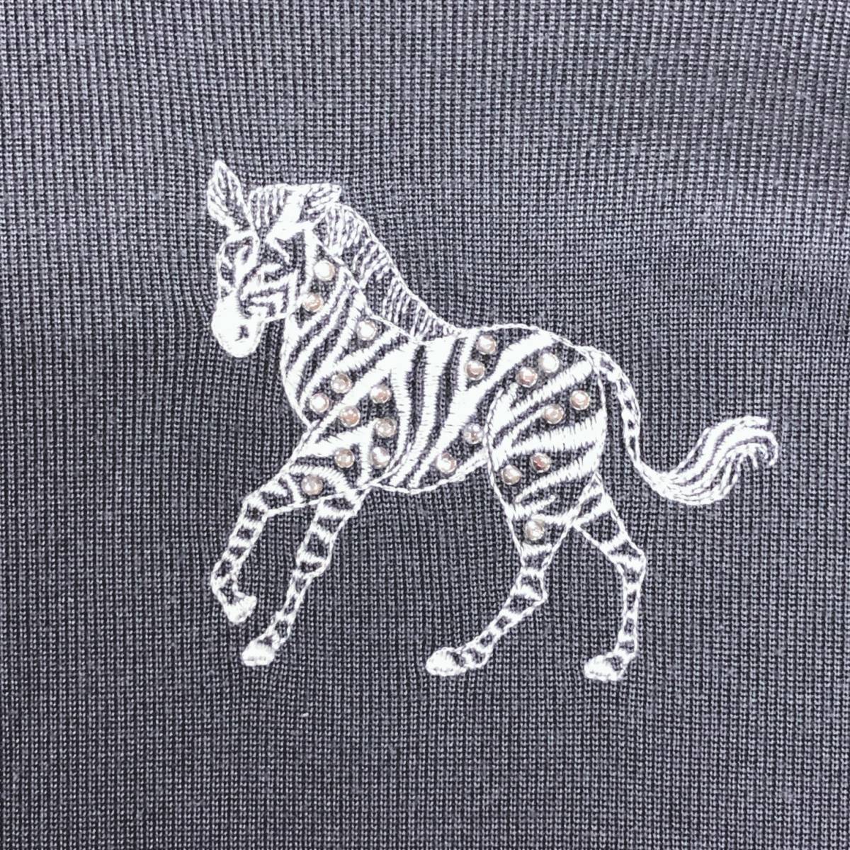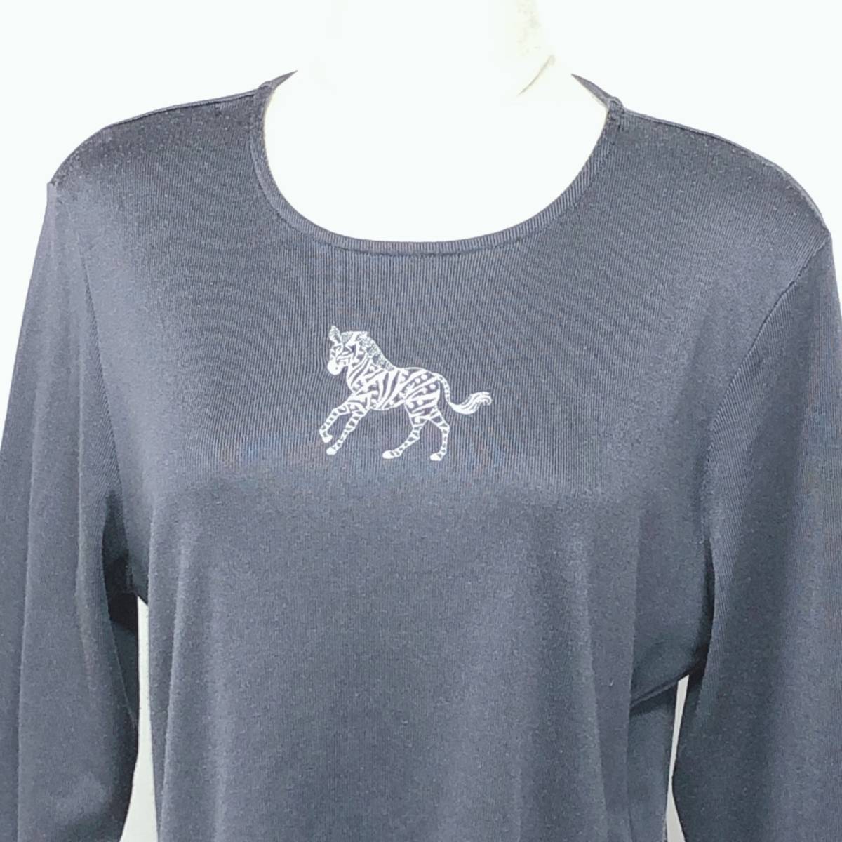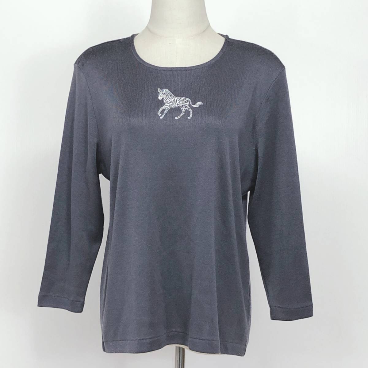 YX464 Monte AZule レディーストップスプルオーバー七分袖 肩パッドラインストーン Mサイズ グレー 灰 ロゴ刺繍 綿素材含 シンプル 春夏秋