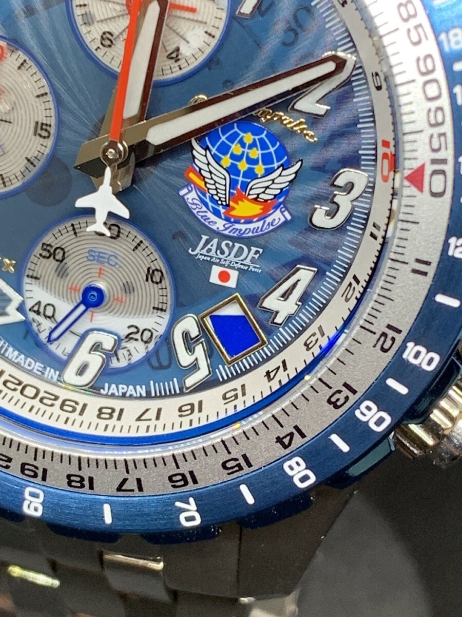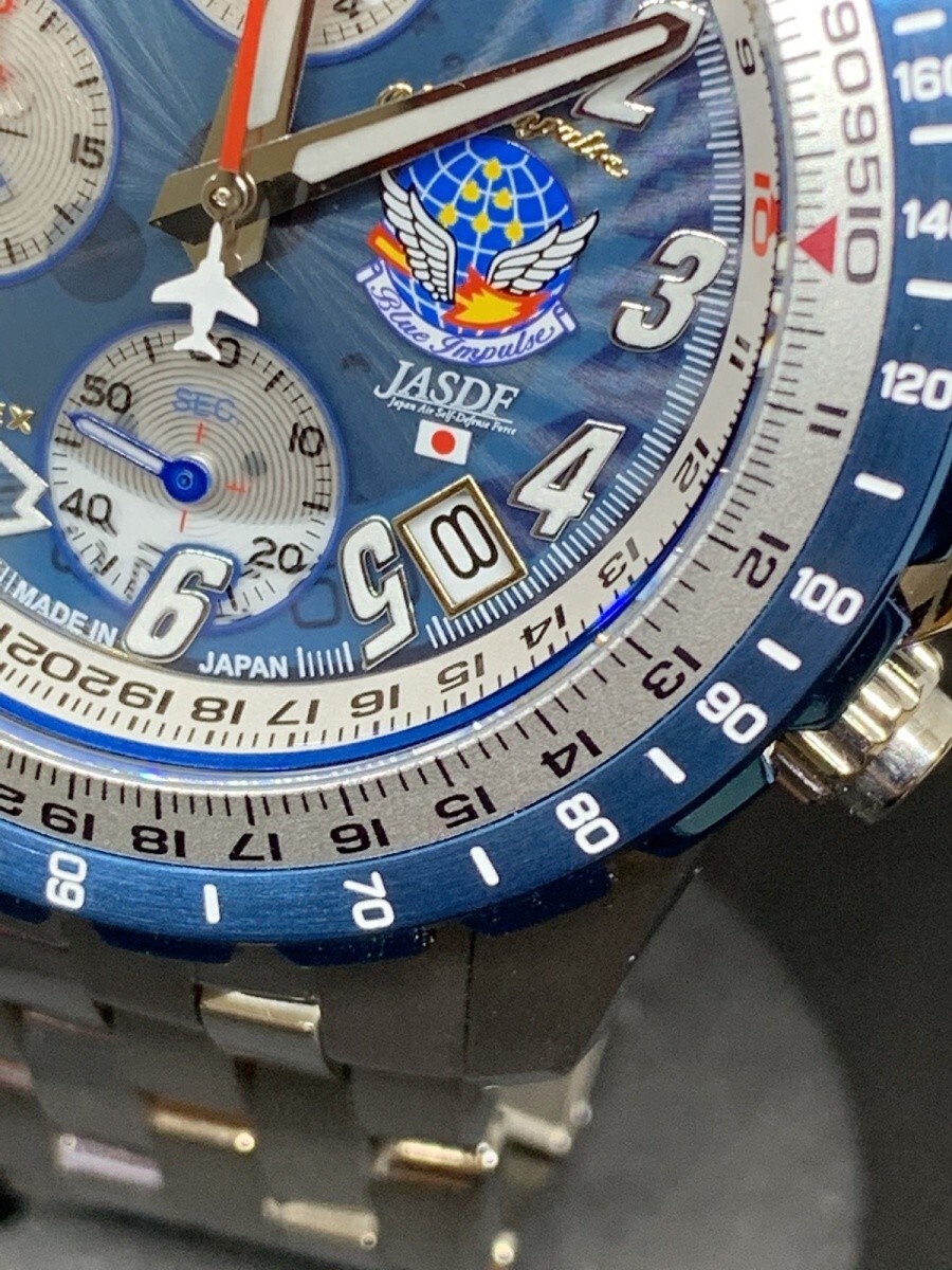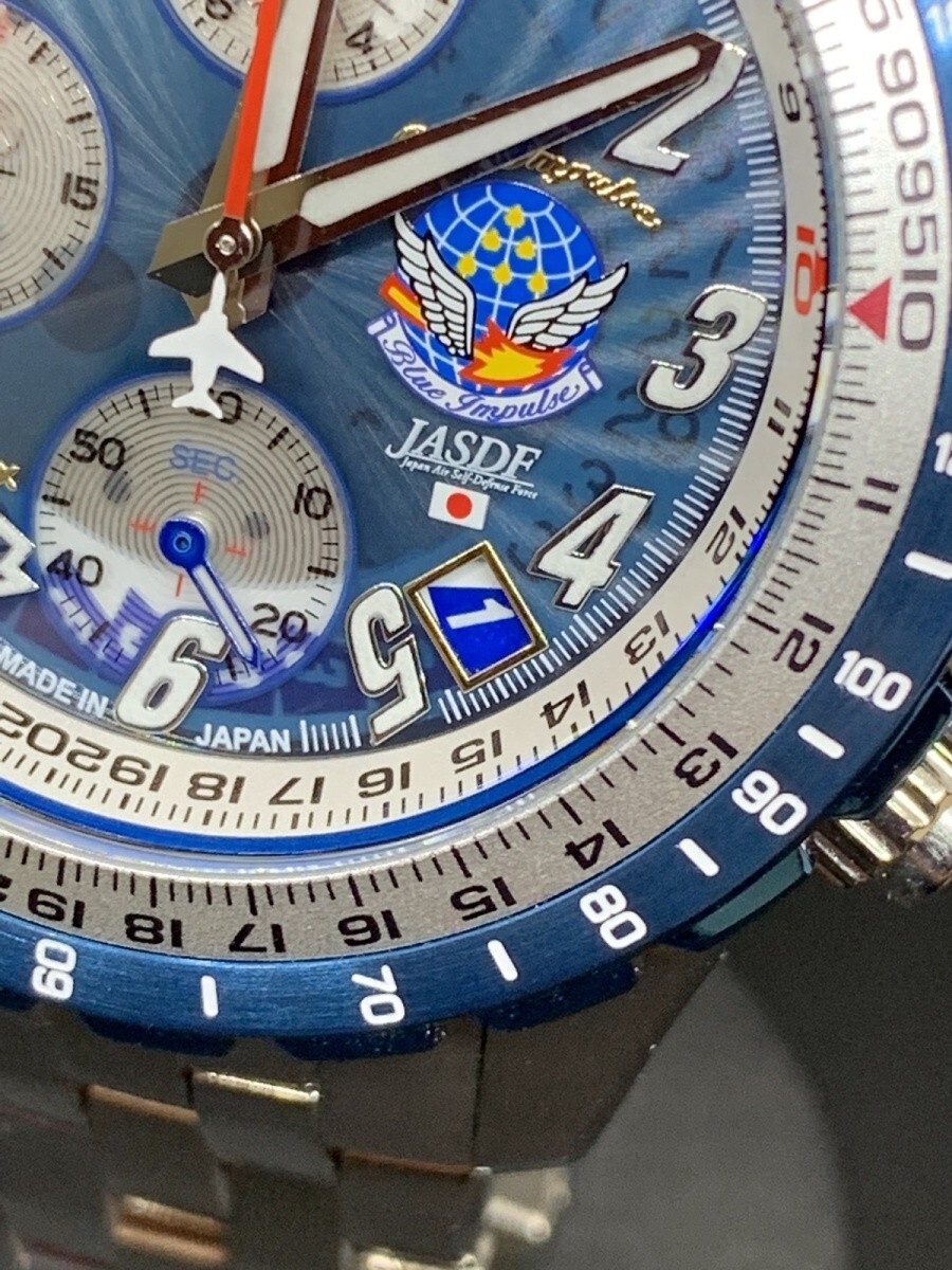 ベゼル:Grade2 (TA2) 純チタン+ブルーIP加工/回転計算尺、パルスメーター搭載