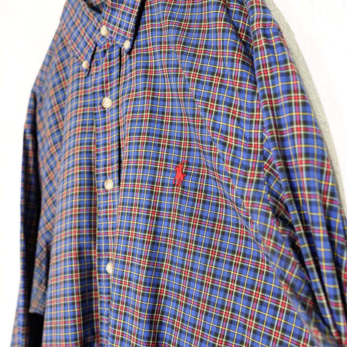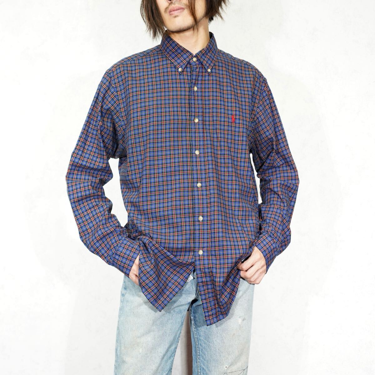 USA VINTAGE Ralph Lauren CHECK PATTERNED HORSE EMBROIDERY DESIGN BD SHIRT/アメリカ古着ラルフローレンチェック柄ホース刺繍デザインボタンダウンシャツ