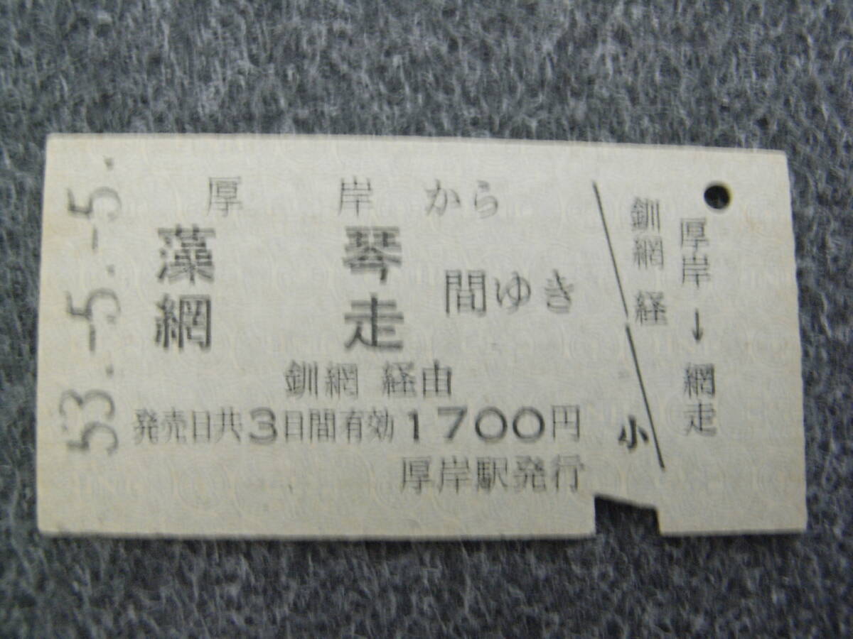 根室本線 厚岸から藻琴 網走 間ゆき 釧網経由 昭和53年5月5日 厚岸駅発行