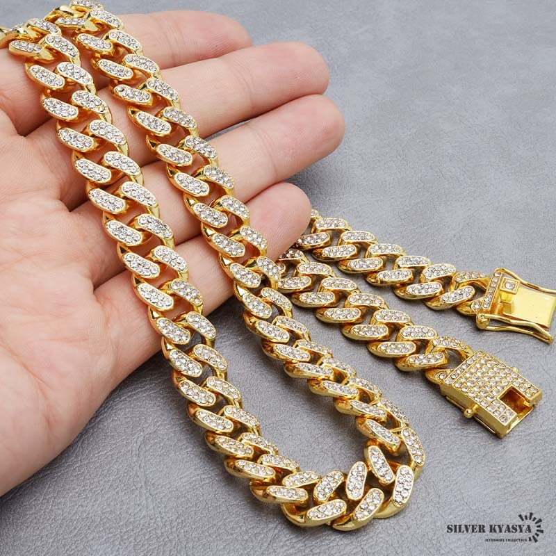 HIP-HOPスタイルやB系ファッション、ストリート系にもおすすめのブリンブリンな定番デザインのアクセサリー。クラブやフェスなど輝く場面で映えること間違いなしのアイテムです。