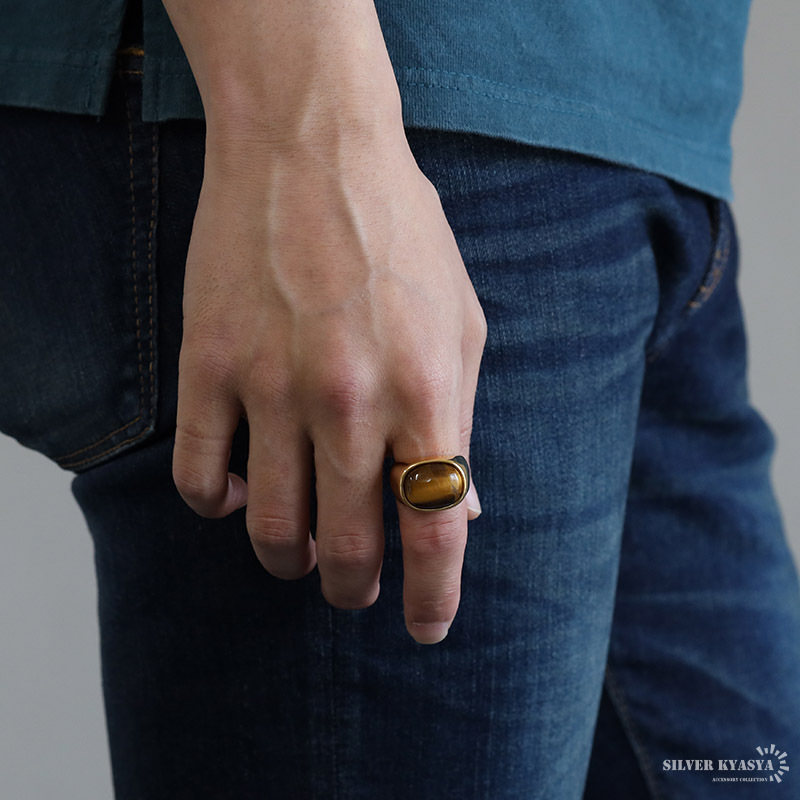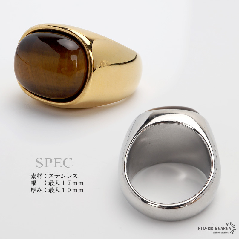 | 商品概要 | ■透き通るタイガーアイリング 大粒の天然石「タイガーアイ」を据えたリング。落ち着いた上品な輝きで、1ランク上の大人のお洒落を楽しめる。大ぶりで存在感ある仕上がり。 ■ステンレス素材を使用 金属部分は頑丈なことで知られるステンレス素材を採用。耐久性はもちろん耐水性も高く水場での着用も可能。金属アレルギーも出にくいとされている金属です。 |