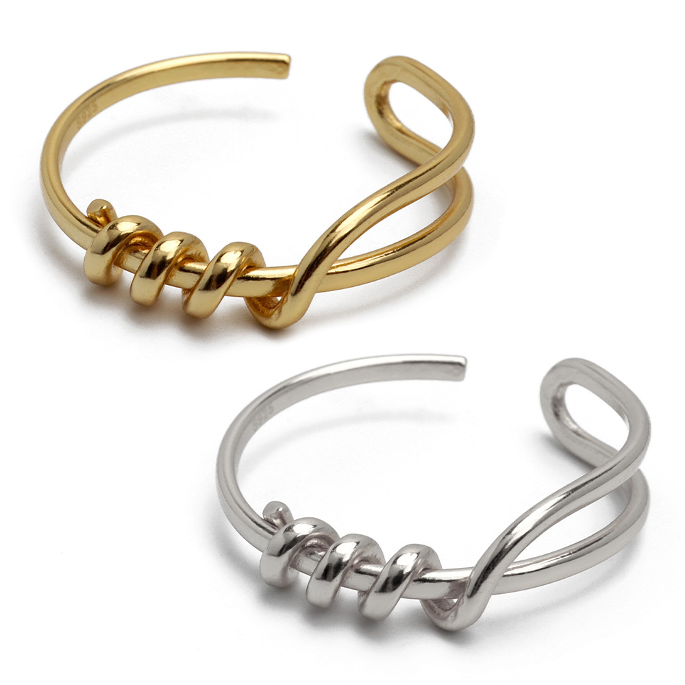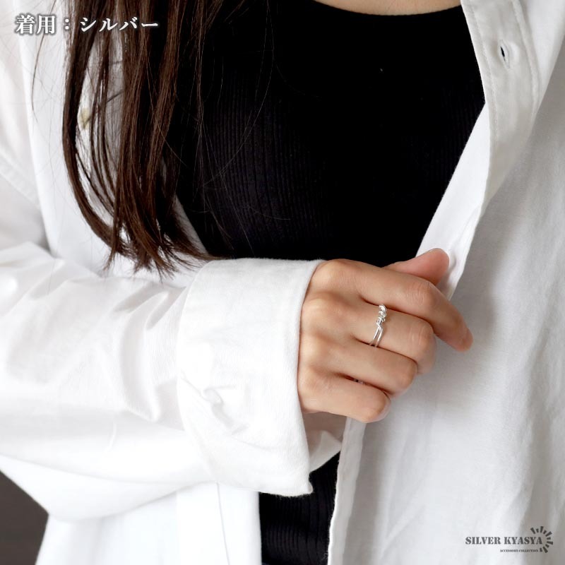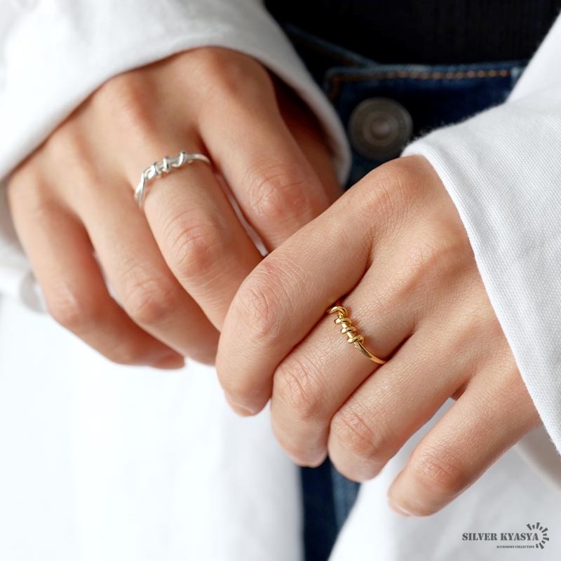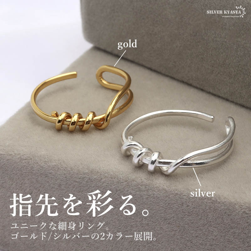 細身リングに、ワイヤーが巻き付いたようなユニークなアイテム。指元に程よいアクセントを加えてくれます。