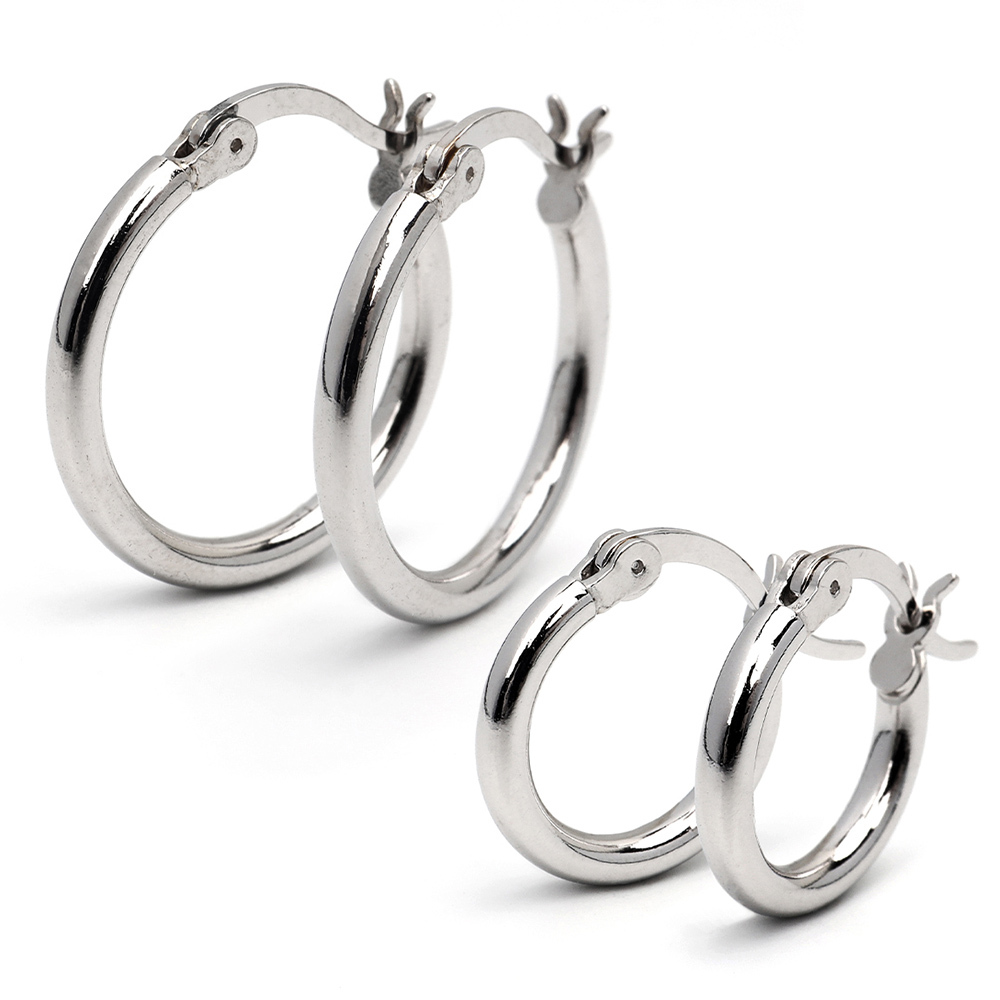 普段使いにおすすめなシンプルフープピアス。内径10mm/15mmの2サイズから選べます。両耳用2点セットでお届けします。