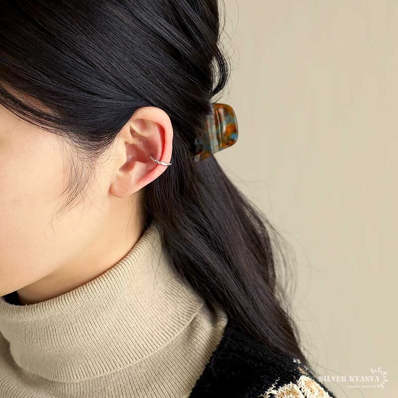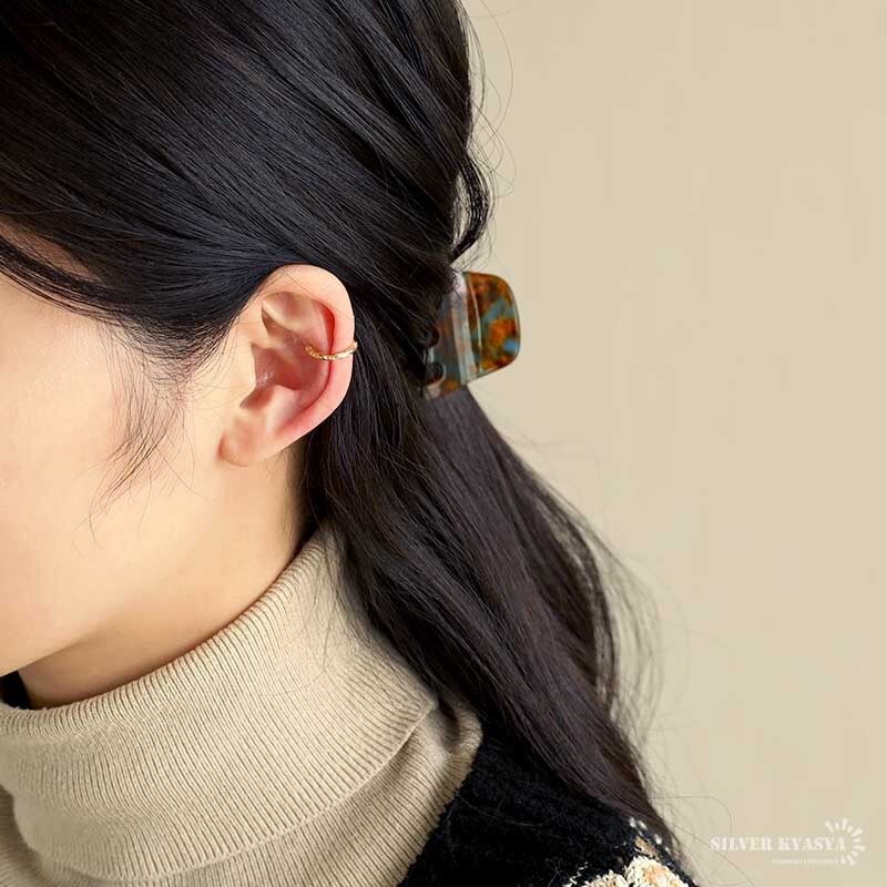 ニュアンスたっぷりのデザインと華奢なシルエットがフェミニンなイヤーカフ。ピアスホール(耳の穴)が無くても装着可能で、簡単に耳元や顔周りを華やかに演出してくれます。