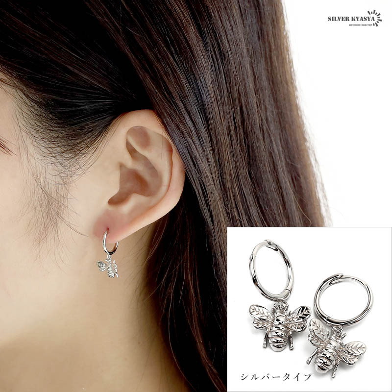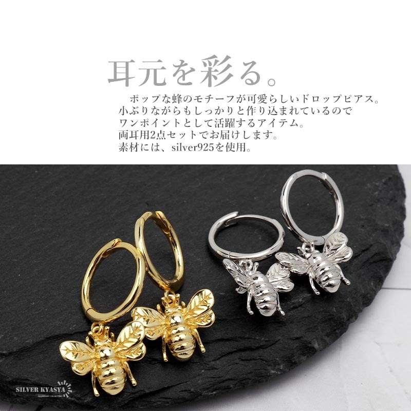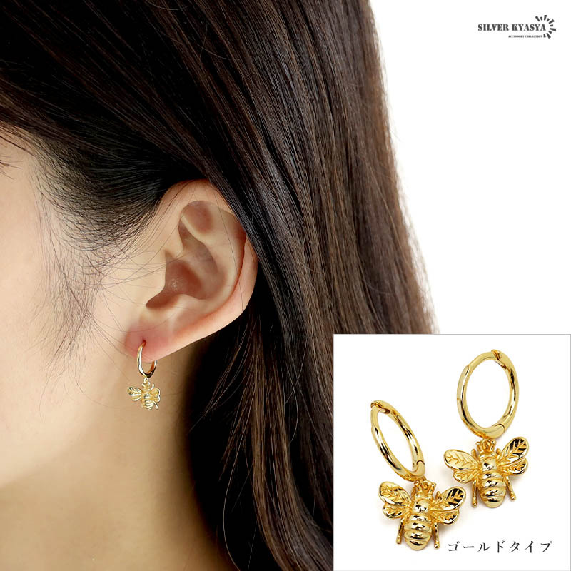 ポップな蜂のモチーフが可愛らしいドロップピアス。小ぶりながらもしっかりと作り込まれているのでワンポイントとして活躍するアイテム。