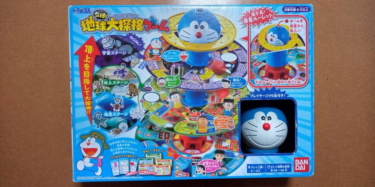【立体ボードゲーム】バンダイ ドラえもん 立体地球大探検ゲーム/中古当時定価¥4378(廃盤かは不明です) ゲーム詳細はBANDAIホームページでご確認いただけます付属品揃っております(お菓子の小箱などに入れております、隙間新聞紙など詰めます)、取扱説明書付き(ヨレ多くシミ微)