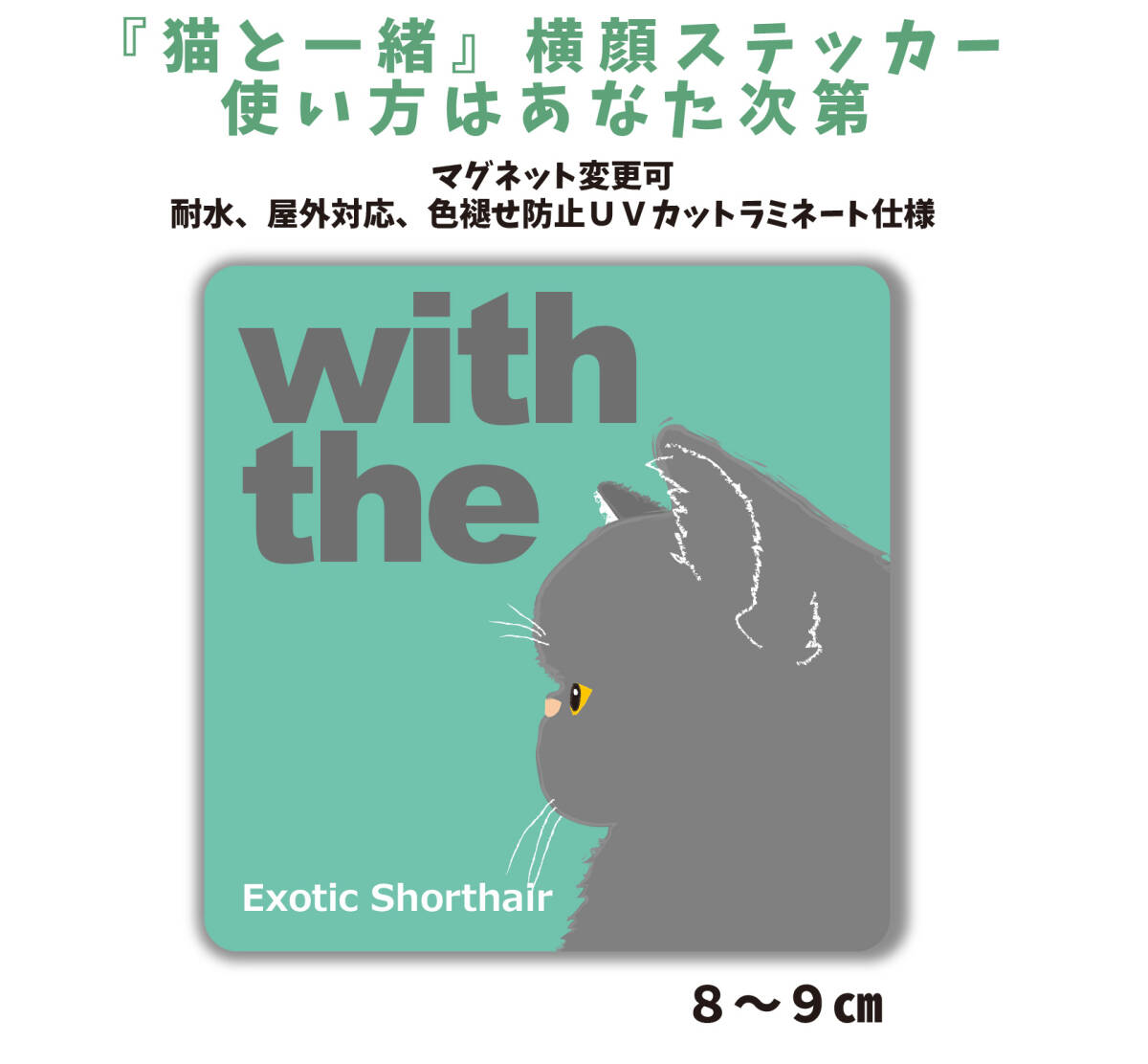 エキゾチックショートヘア ブルー『猫と一緒』【玄関 車 ポスト】ステッカー 名入れ マグネット変更可 屋外 防水 カスタマイズ