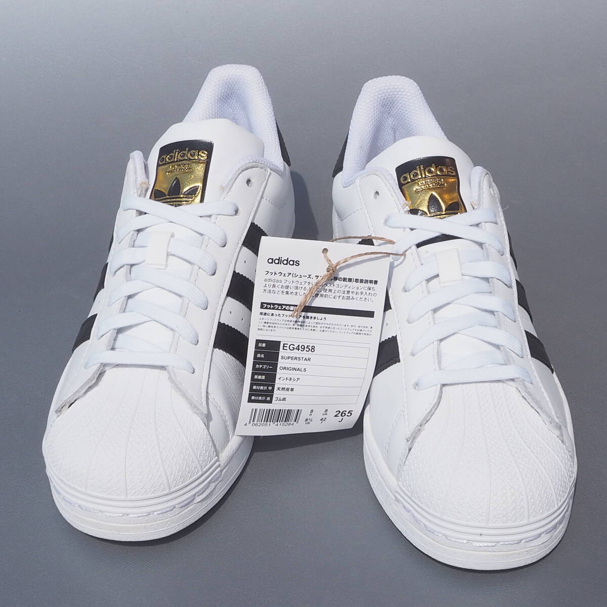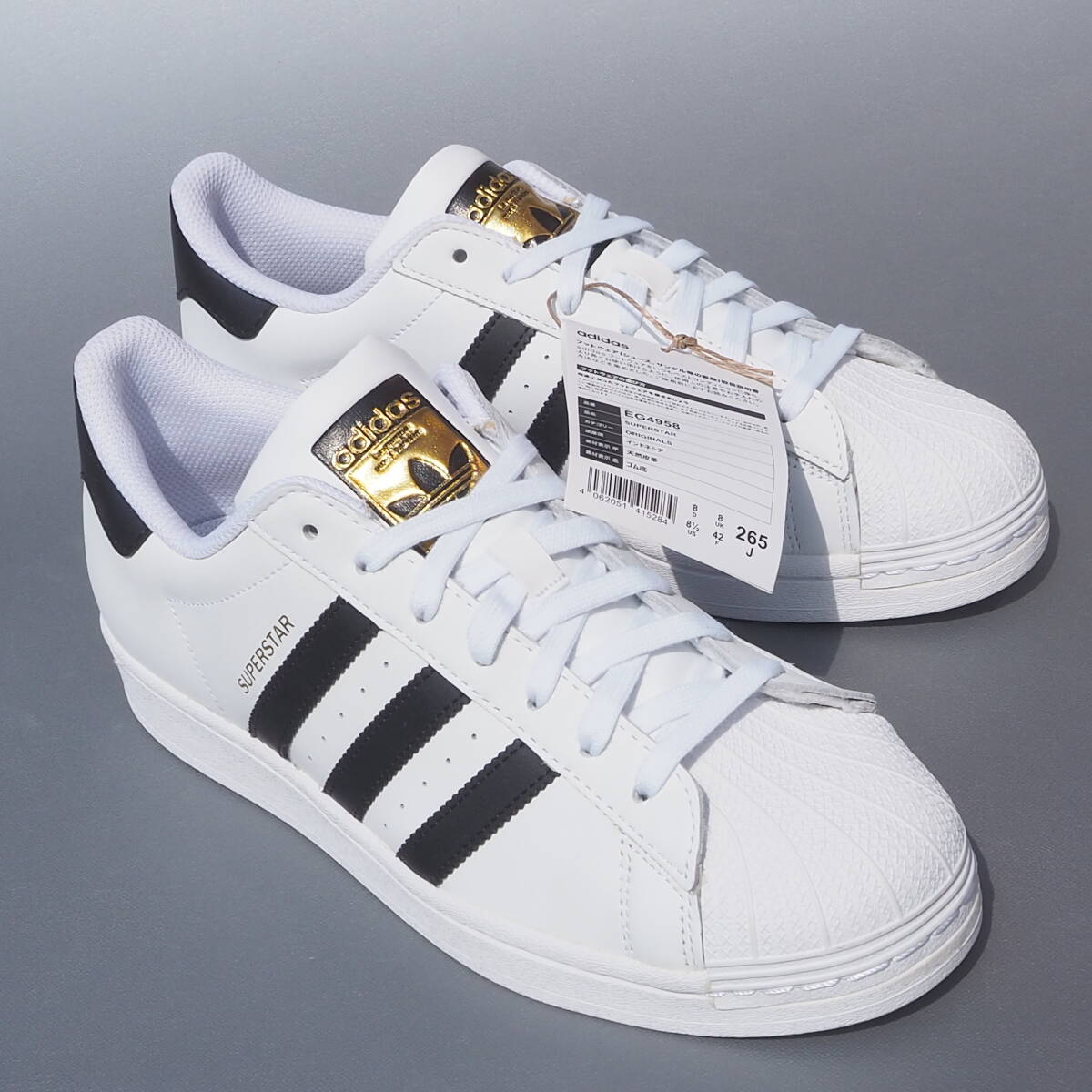 デッド!! US 8 1/2 /26.5cm 新品 2023年 adidas Originals スーパースター 白x黒 金ベロ 天然皮革