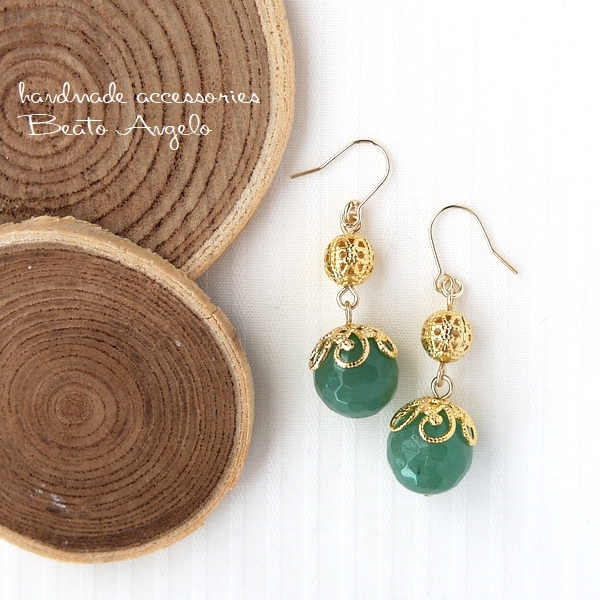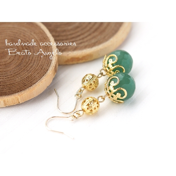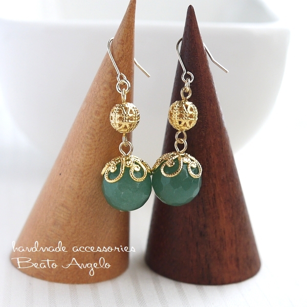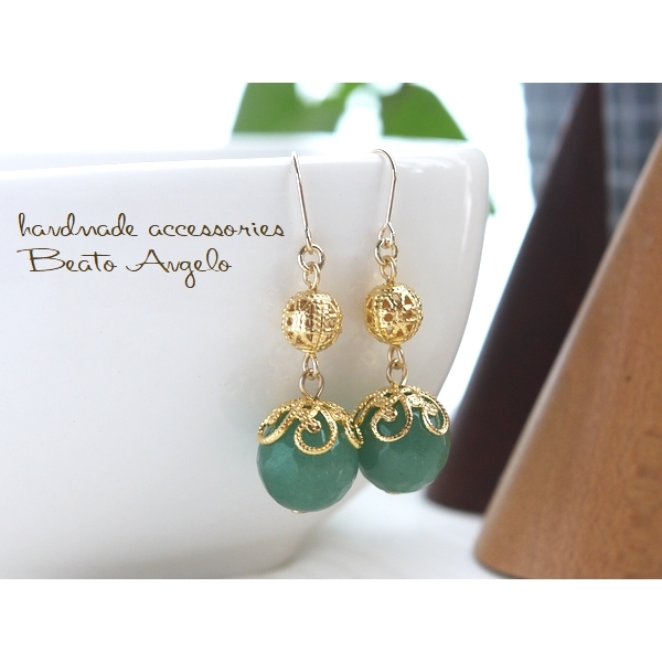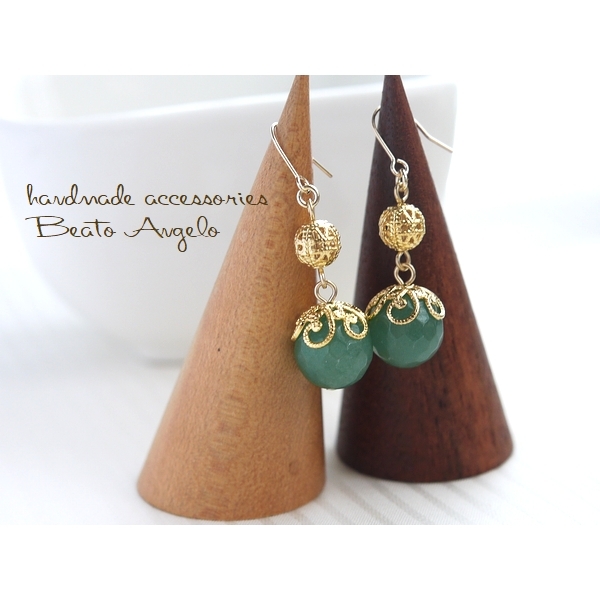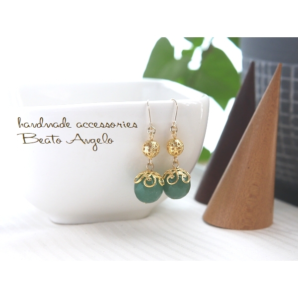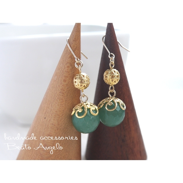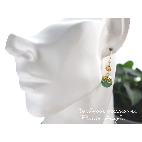 天然石アベンチュリンと透かし玉のピアス(p-091)G