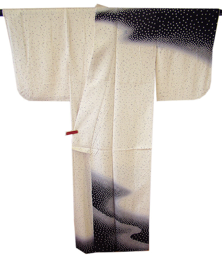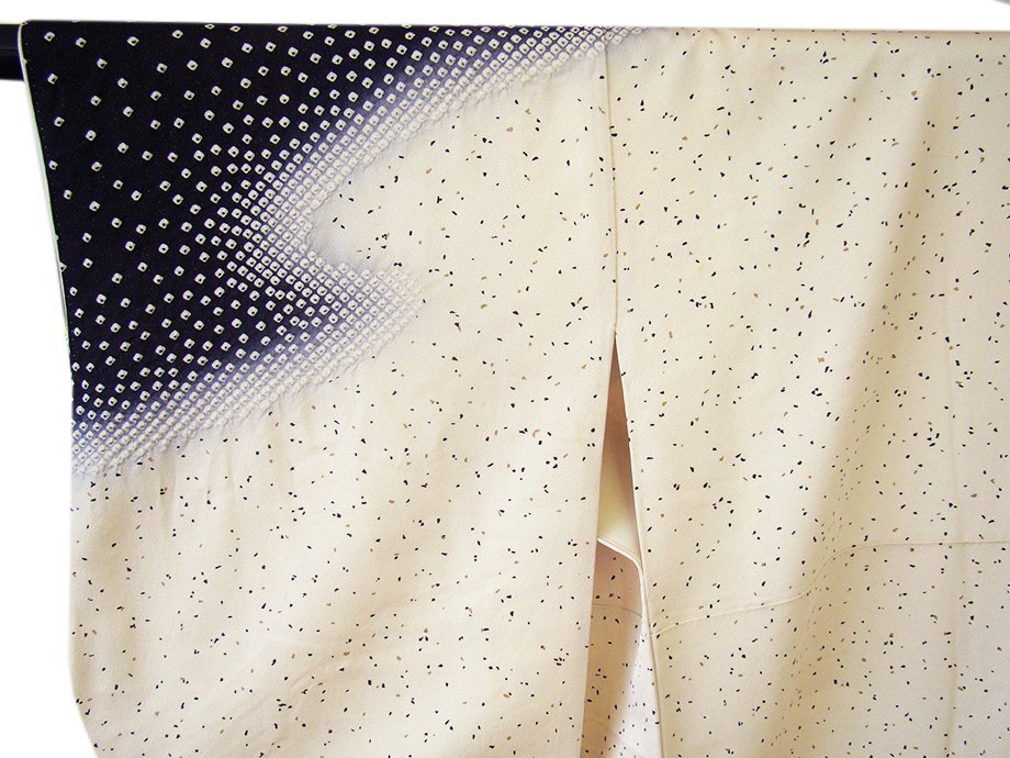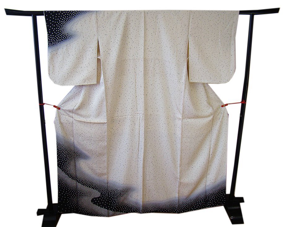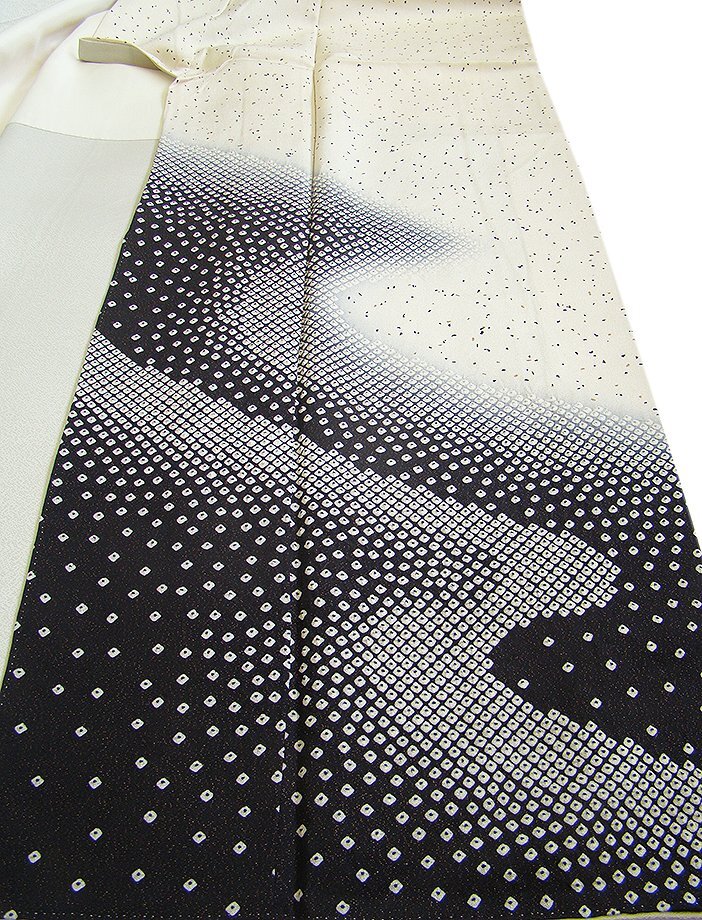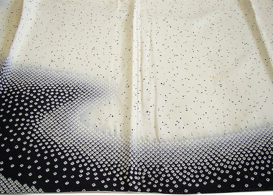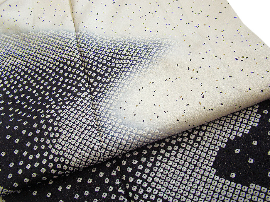 | 商品説明 | こちらのお品は「袷」ですので10月から5月までお召頂ければと思います。 とてもしなやかで柔らかな手触りの着心地良い重めの上質な極上ちりめん地の生地、 象牙色地に裾にかけて黒色ぼかし染に全体に黒と国防色の染に煌く金ラメ入りに鹿の子絞り柄、 八掛は薄灰色(正絹)、幅広い年代の方にお召頂けます。 |