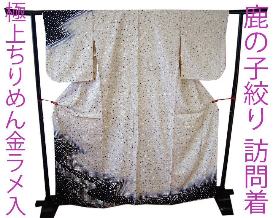 ★美品◆帯や小物次第で様々な表情をお愉しみ頂ける逸品! 金ラメ入りの極上ちりめん地に鹿の子絞り柄の粋な訪問着(正絹) C802★ | |
