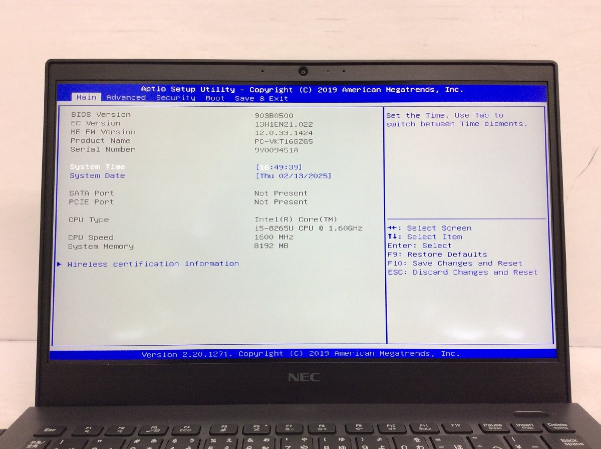 ジャンク/ NEC PC-VKT16GZG5 Intel Core i5-8265U メモリ8.19GB ストレージ無し 【K08689】