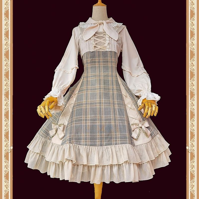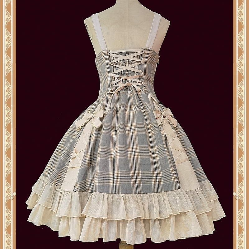上品な格子柄が特徴で、レトロスタイルのクラロリジャンパースカート♪ 裾まわりには2段のフリルが施され、華やかさを演出します。 背中の編み上げリボンとシャーリング仕様によって、 お好みのシルエット感を調節することも可能です◎ スカートにあしらわれたリボンは取り外し可能です。 ブラウスとの組み合わせがおすすめです。 注:この商品はジャンパースカート1枚です。その他の商品は含まれていません。 ヘアバンドをセットにする場合は追加で800円頂戴します。 ◆カラー: 写真通り ◆素材:ポリエステル ◆サイズ:S、M、L、XL