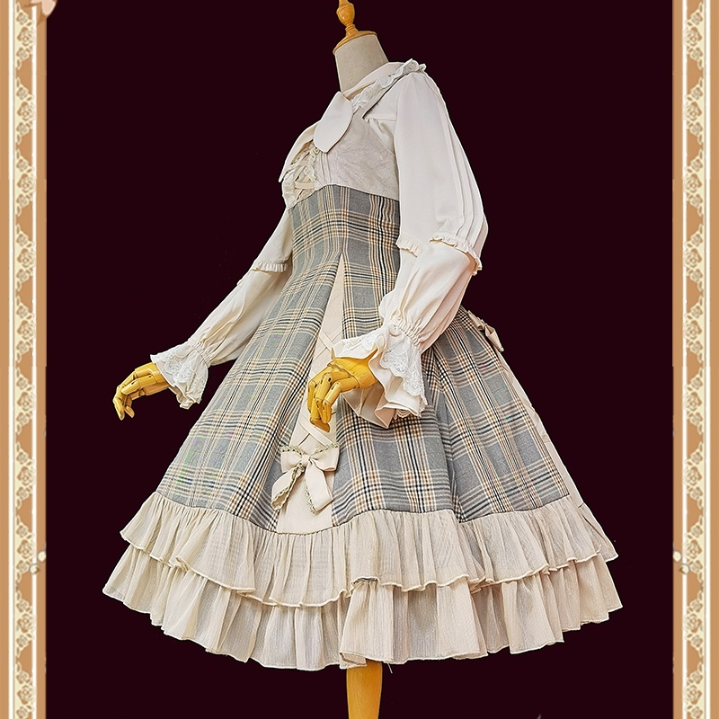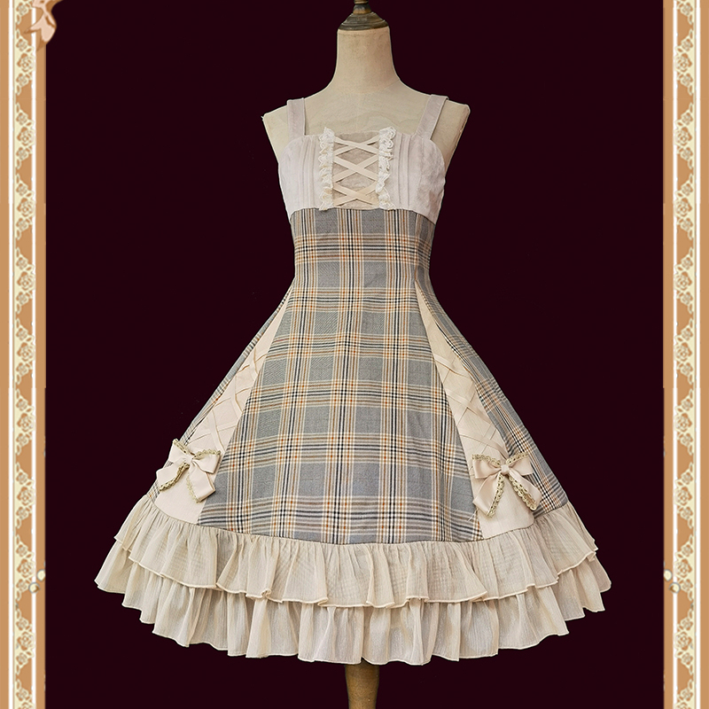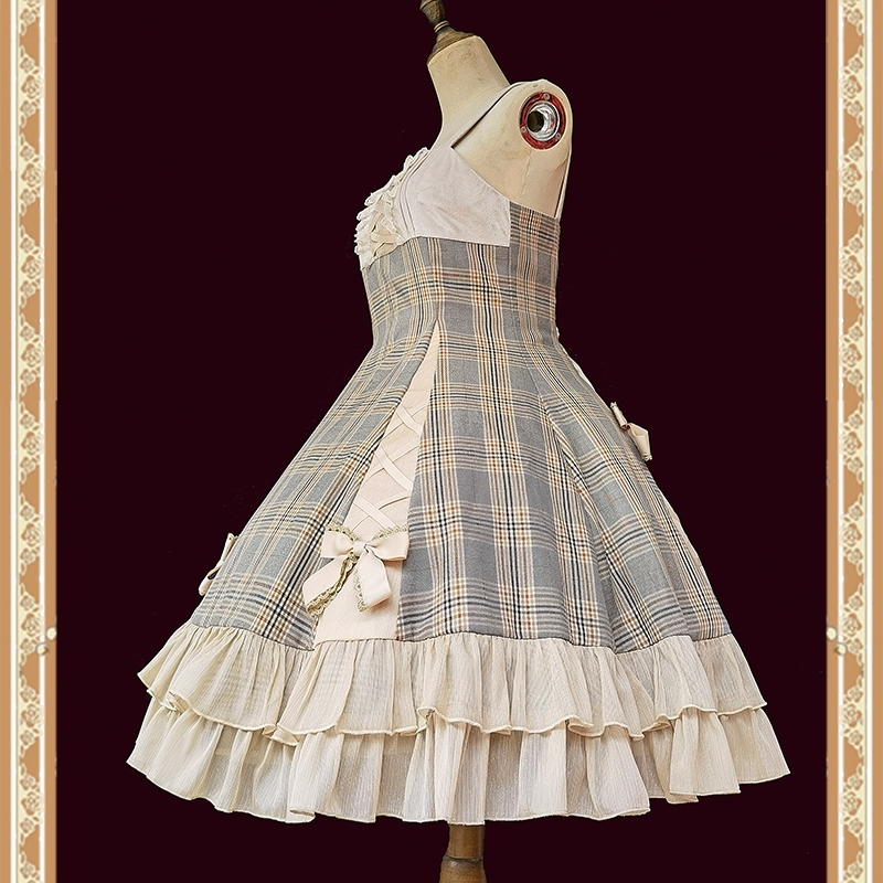 ロリィタ ジャンパースカート ワンピース JSK格子柄 清楚 フリル リボン ロリータ レディースLolita ゴシック ゴスロリ 甘ロリ クラロリ クラシカル レトロ かわいい 姫 日常 コスプレ ハロウィーン 衣装 コスチューム チェック ロリータファッション