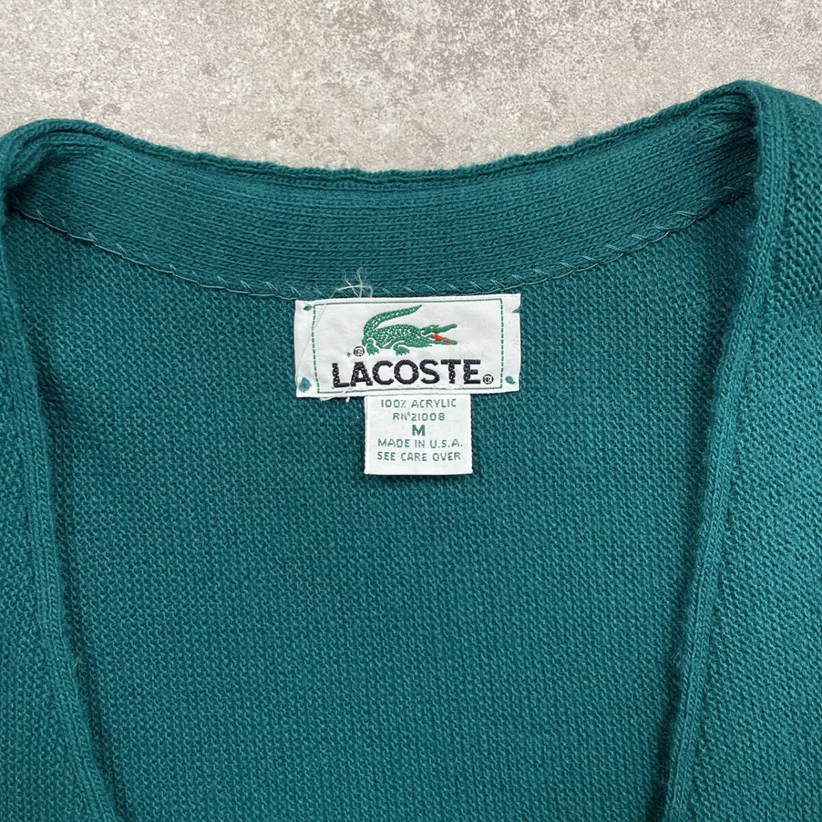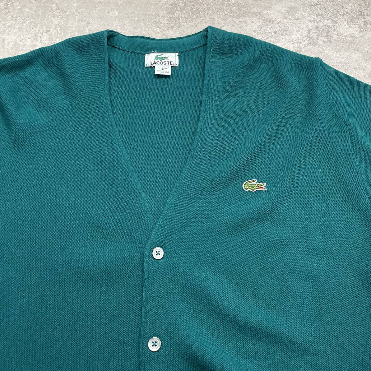90s ラコステ アクリル ニット カーディガン サイズ M アメリカ製 エメラルドグリーン