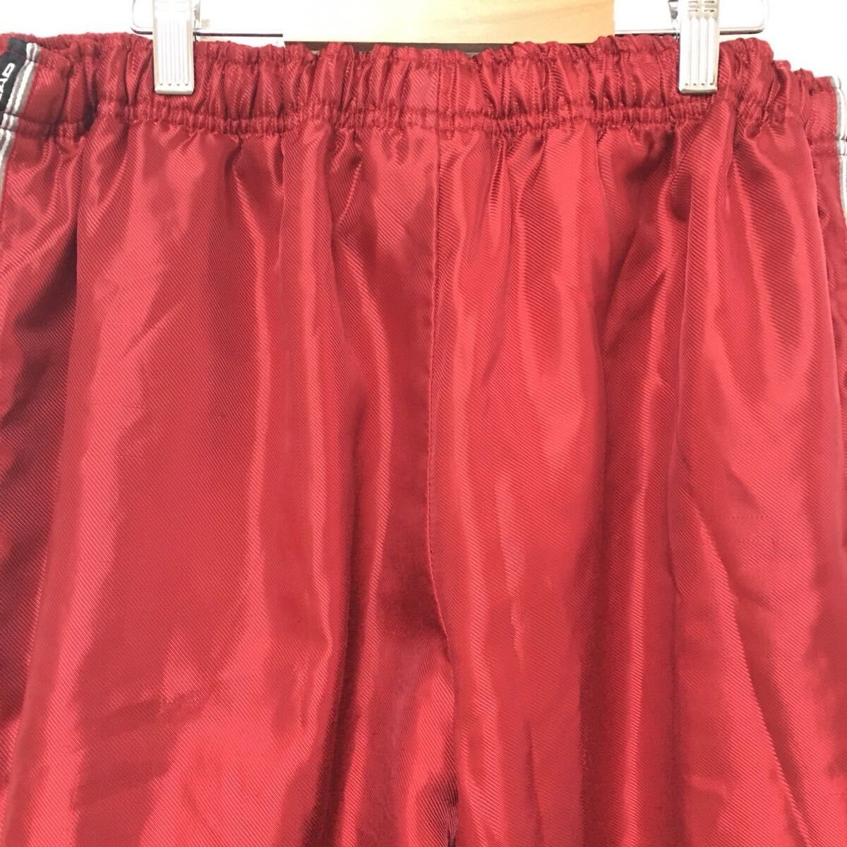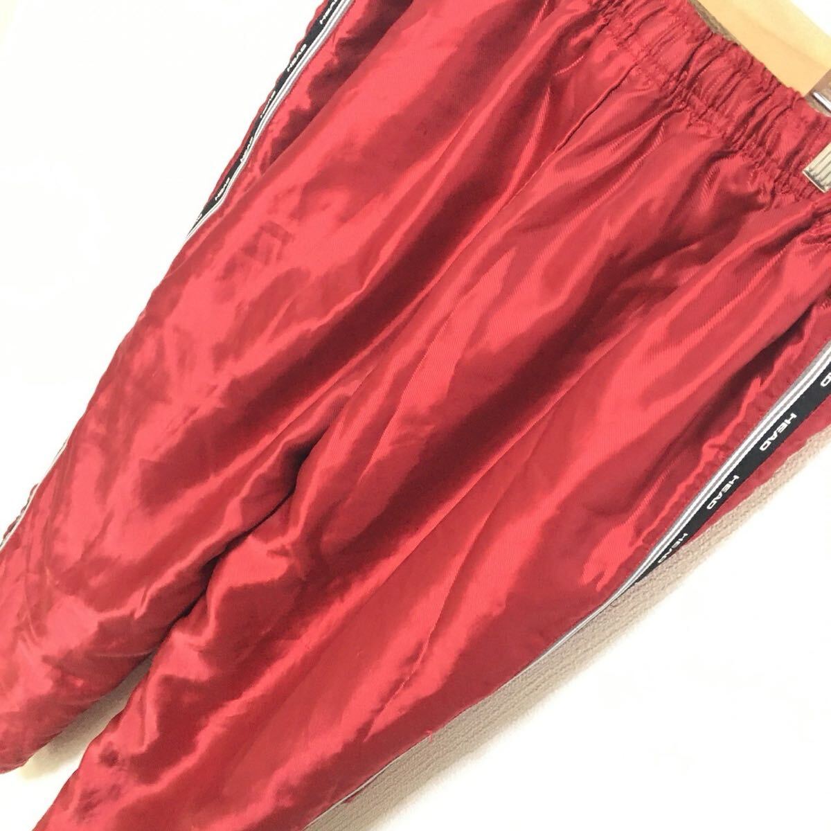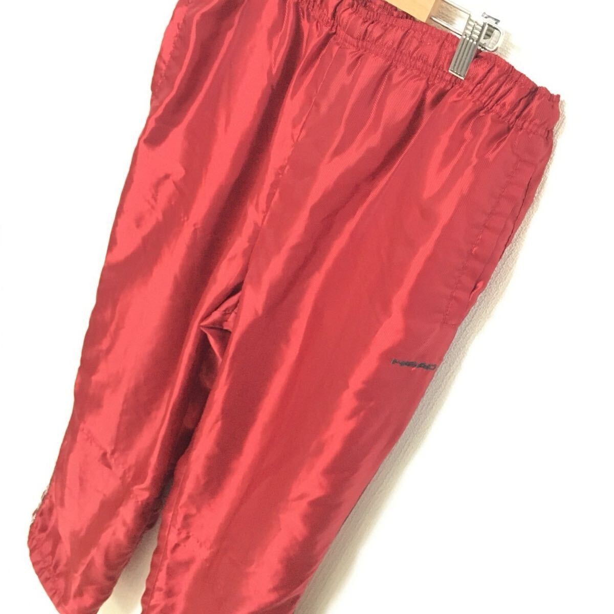 秋冬のゴルフなどにオススメなHEADのトラックパンツです。寒い日、風が強くても暖かく着用でき、鮮やかなレッドカラーが目を引きます!全体的に強い使用感がありますが良い味としてお楽しみください。サイズ記載が無いので採寸を参考にして下さい。