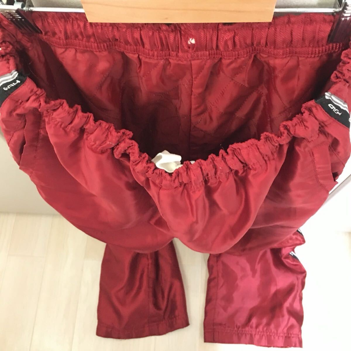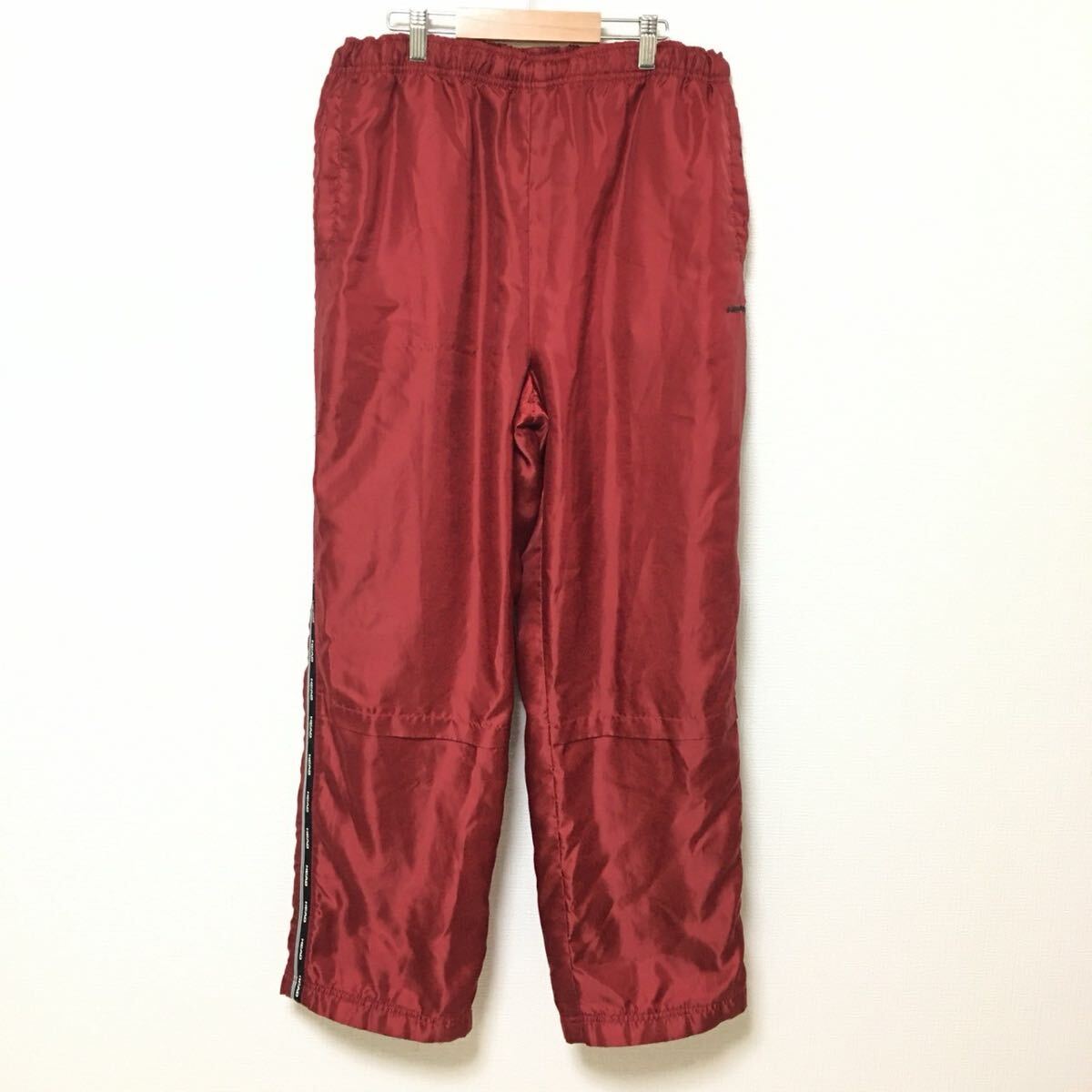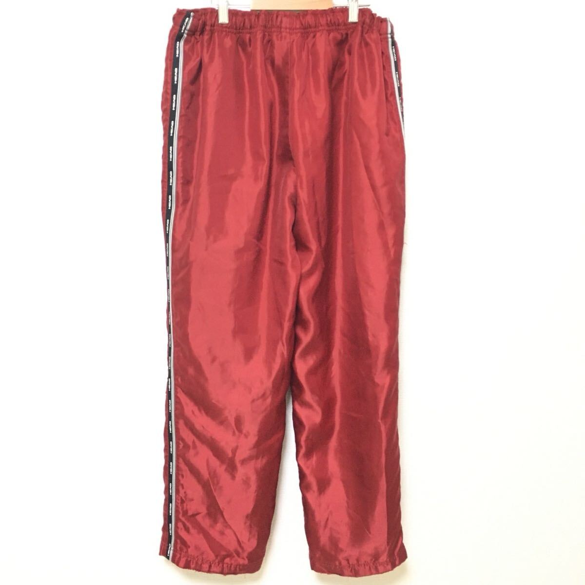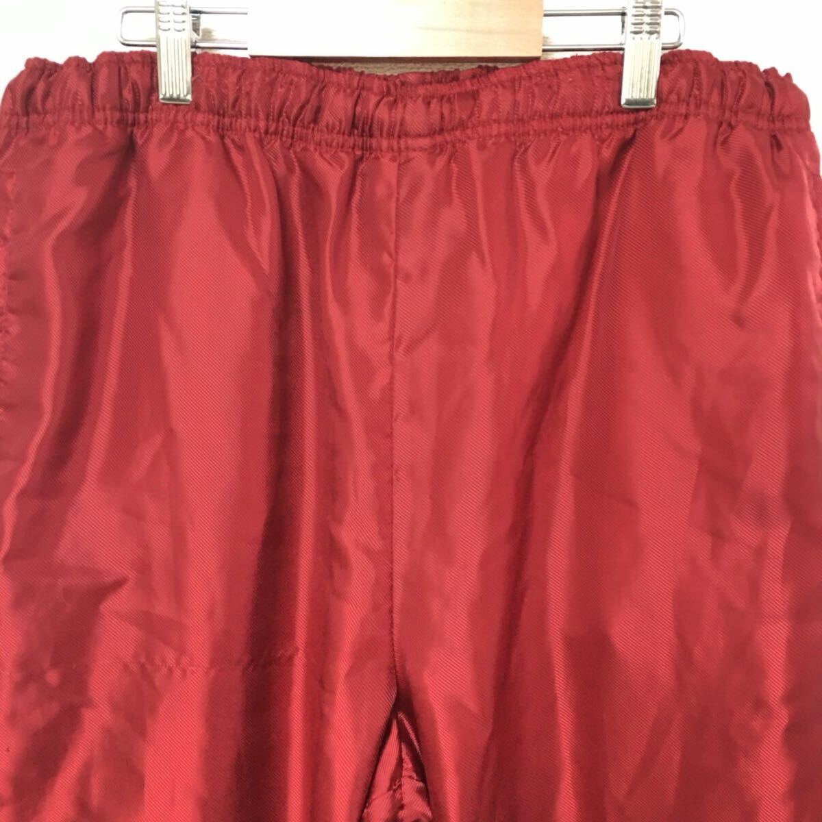 秋冬のゴルフなどにオススメなHEADのトラックパンツです。寒い日、風が強くても暖かく着用でき、鮮やかなレッドカラーが目を引きます!全体的に強い使用感がありますが良い味としてお楽しみください。サイズ記載が無いので採寸を参考にして下さい。