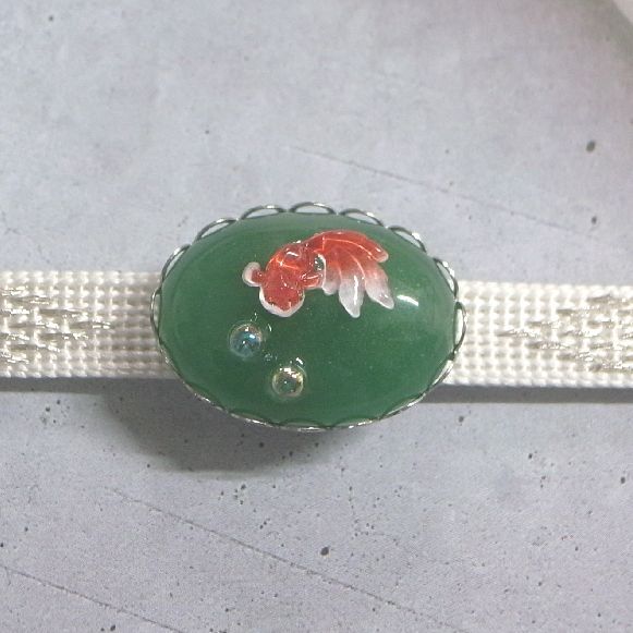 LEAF CLUB ♪ハンドメイド 帯留め 帯留 グリーンアベンチュリン 金魚 天然石 アベンチュリン 金魚鉢 泡 浴衣 グリーン/緑