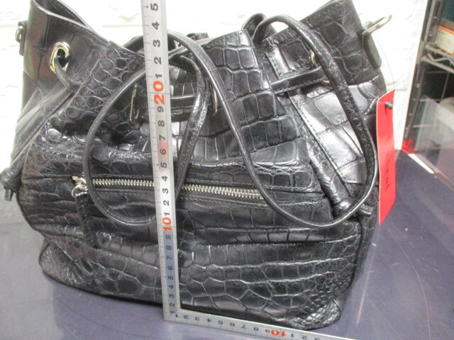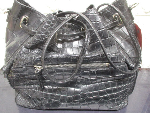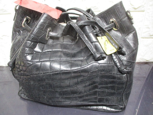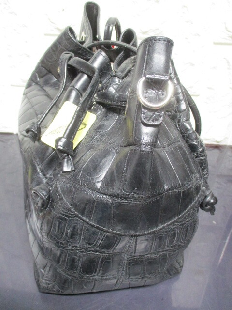 マ6/新品未使用 88%引き!クロコダイル クロコ 革皮 巾着 ショルダー バッグ ブラック 黒 定価429000円