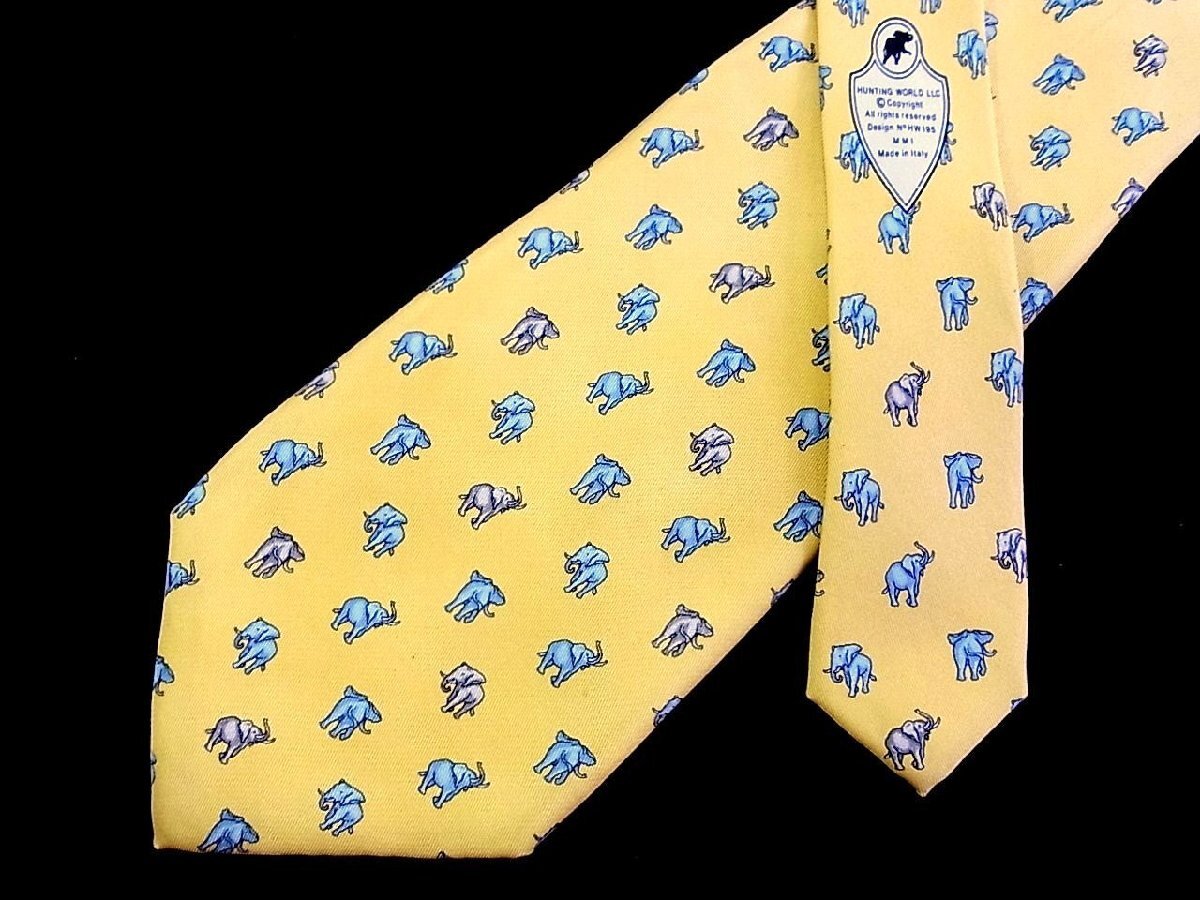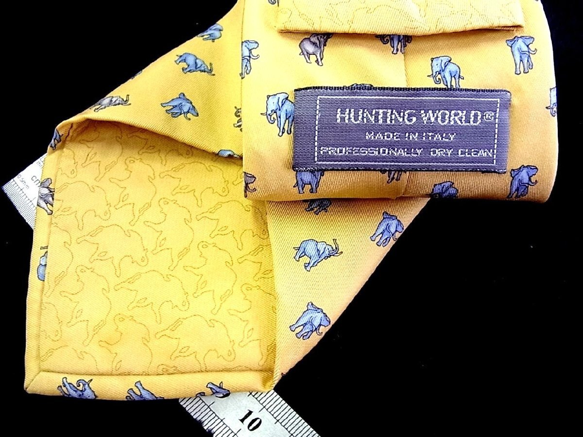 ♪今週の特売980円~♪2381♪状態並品【Hunting World】ハンティングワールド【象 ぞう 動物 柄】ネクタイ♪