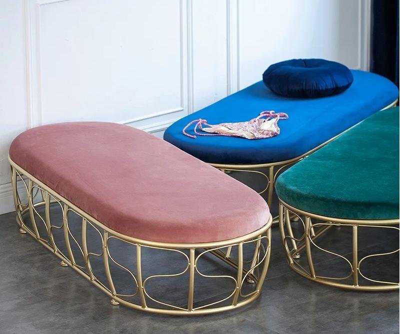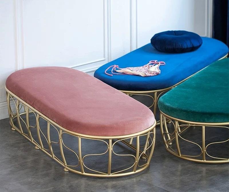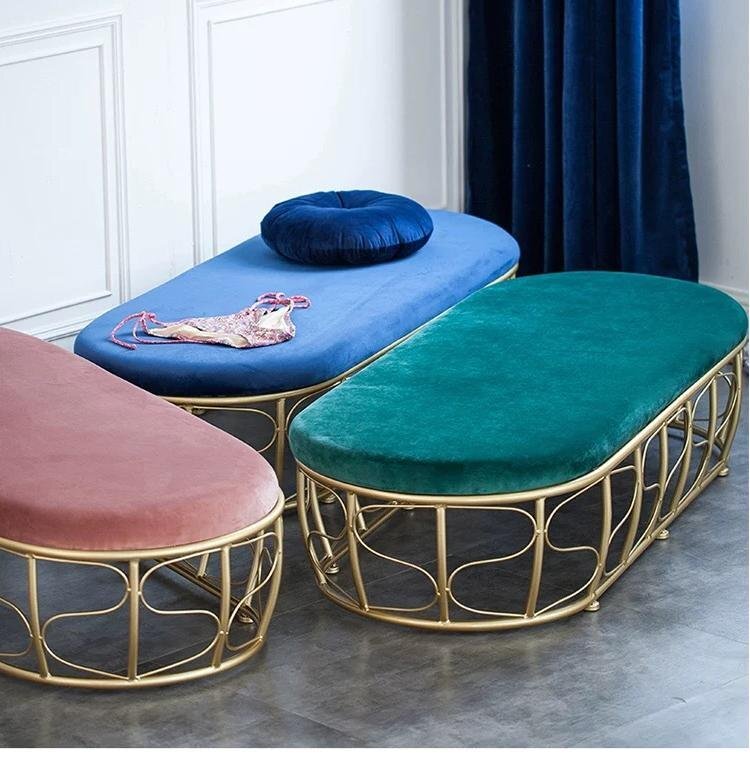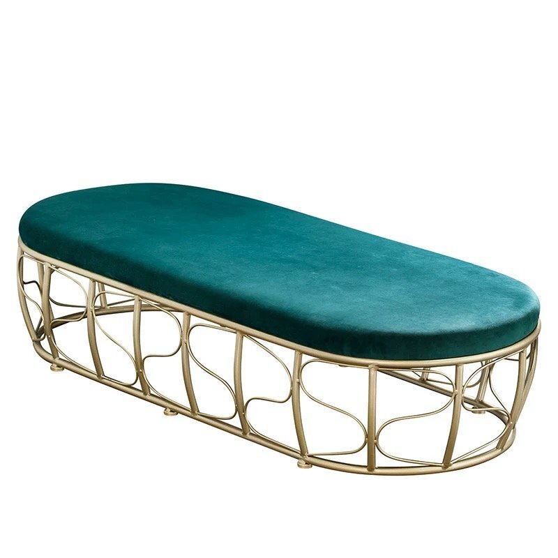 クリエイティブなゴールデンベースのベルベットベンチ、快適な布張りの玄関靴ベンチ、リビングルームのフットレストスツール、ベッドの端のベンチシート (Color : Green Size : 120x40x33cm)