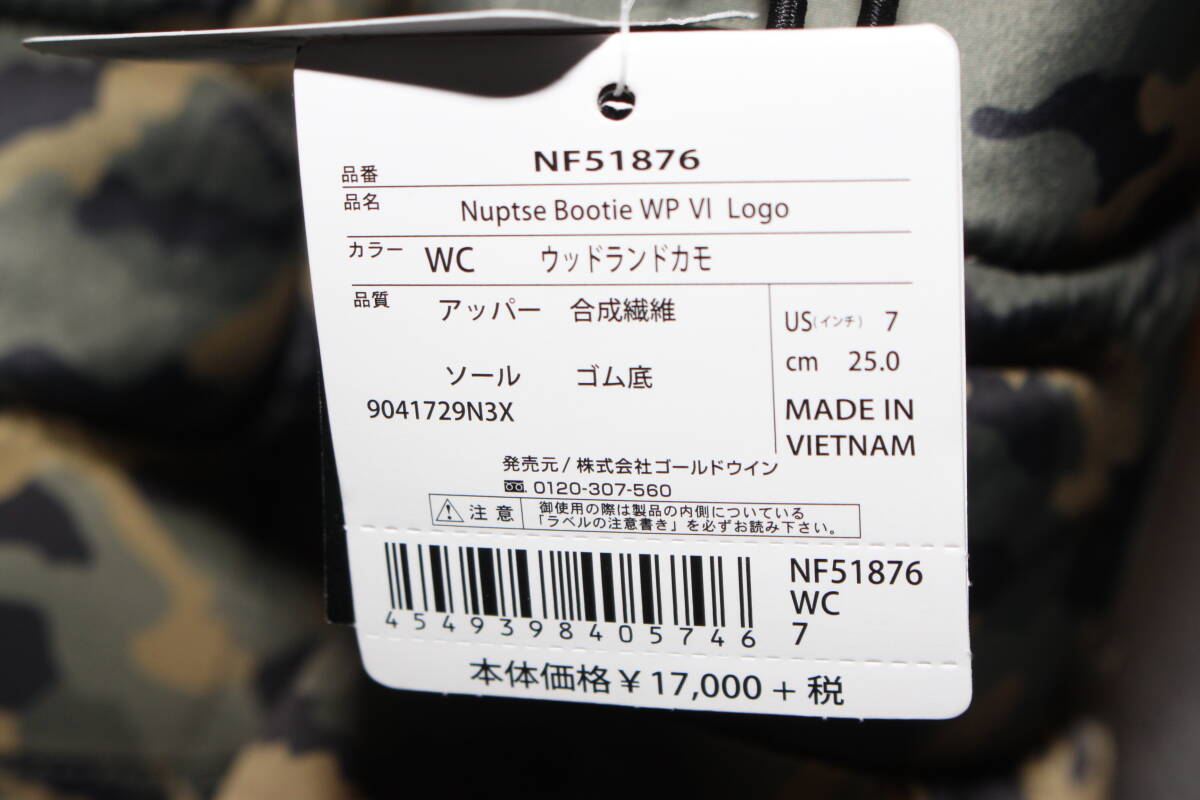 未使用 25㎝ ノースフェイス THE NORTH FACE 迷彩カモフラ ヌプシブーティーウォータープルーフVIロゴ NF51876 送料無料即決