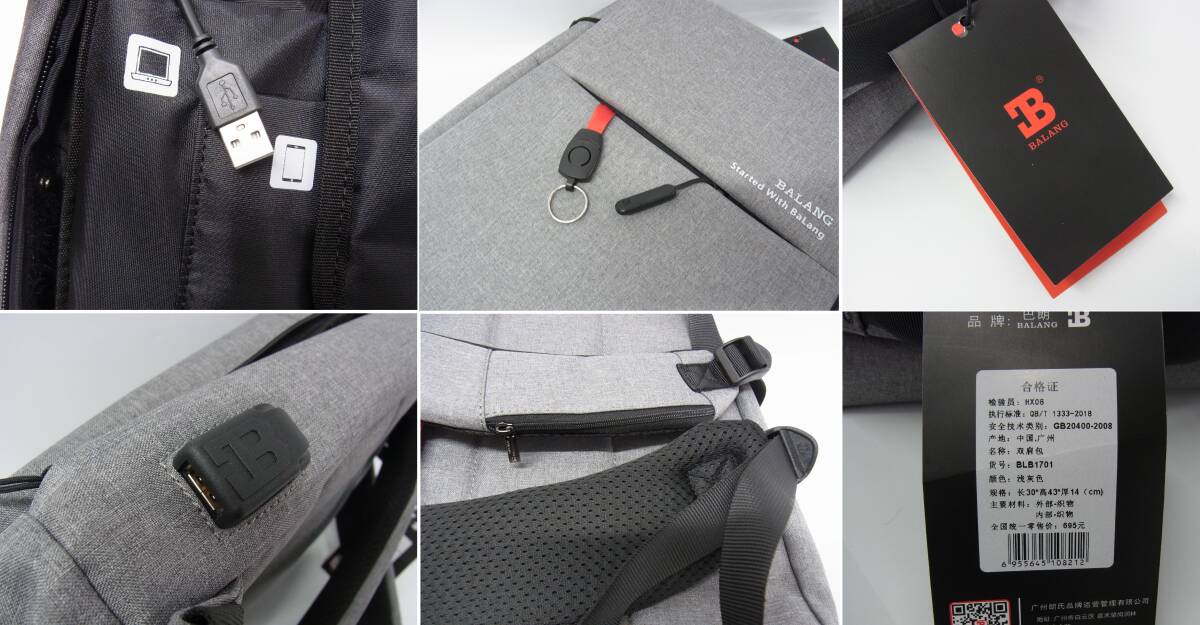 【LG/複数出品】☆BALANG ビジネスリュック ライトグレー ノートパソコン USBポート ビジネス リュック バックパック 通勤 通学 BLB1701 10 | |||