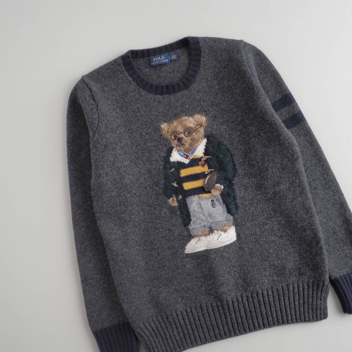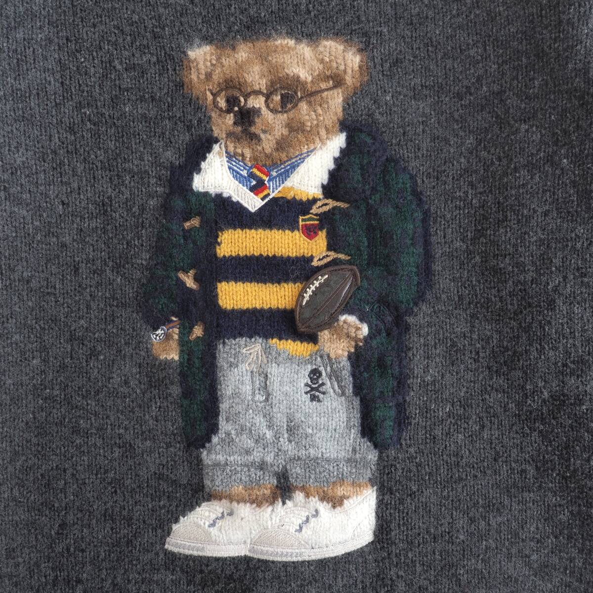 ラルフローレン Ralph Lauren ウール100% ニット セーター グレー ポロベア メンズ 美品