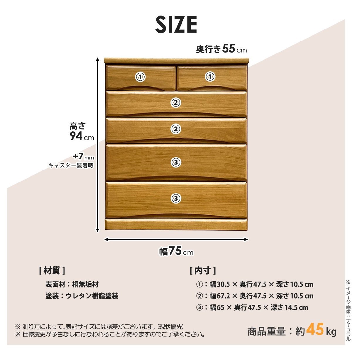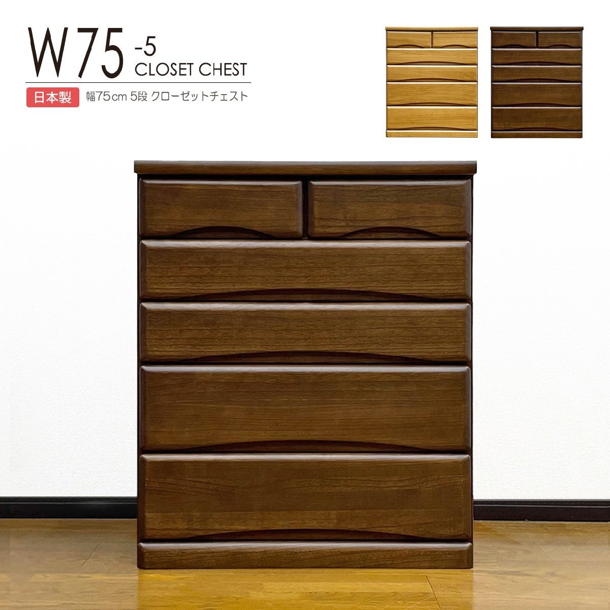 チェスト タンス ローチェスト たんす 木製 おしゃれ 衣装ケース 洋服タンス 5段 幅75cm 収納家具 ナチュラル
