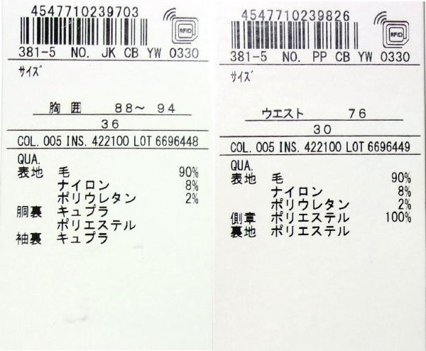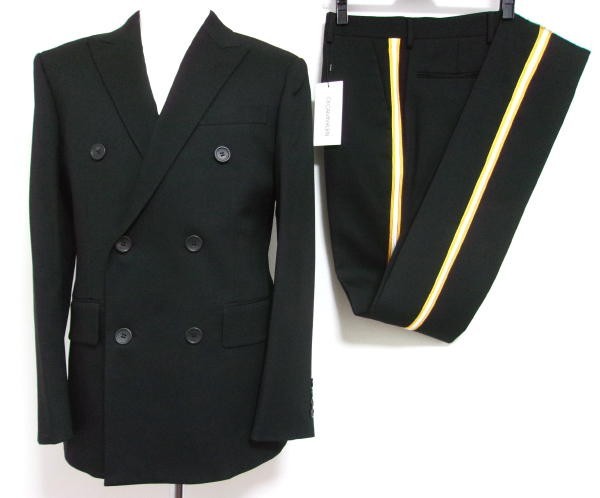 | ◆CK CALVIN KLEIN(カルバンクライン)のカラードギャバジン ジャケットとサイドライン入りパンツのセットアップ新品です。 ダブルブレストジャケット。フル毛芯仕立て。コンパクトなラペルやスリムなシルエット等、CKらしさを落とし込んだ若々しいダブルブレストです。 パンツはM205型と共通のシルエットを採用しており、あらゆるスタイリングに積極的に用いられる新定番アイテムとなります。 通常はニット素材に用いられる防縮ウールを特殊な防糸技術によってナイロンとウレタンをコアとするストレッチファイバーに仕上げました。 これによって通常の毛織物では不可能なストレッチ性とタフなキックバックが得られます。 また、含浸加工という風合いを固定する加工を入れており、ハードな仕立てとなっています。 ジャケットは総裏地、センターベント、袖4つボタン仕様。ノータックパンツ。 定価は ジャケット¥58.300 パンツ¥28.600 合計¥86.900です。 表記サイズ ジャケット:36 パンツ:30 実寸サイズ ・ジャケット 肩幅:44.5cm 身幅:50.5cm 着丈:70cm 袖丈:60cm ・パンツ ウエスト:39.5cm ヒップ:47.5cm 股上:26.5cm 股下:96cm(未処理) 太腿:30.5cm 膝:20.5cm 裾:17cm ※すべて平置きにして採寸しております。 採寸は参考程度とさせていただきます。 カラー ブラック系 素材 ・ジャケット ・表地 毛90% ナイロン8% ポリウレタン2% ・胴裏 キュプラ、ポリエステル ・袖裏 キュプラ ・パンツ ・表地 毛90% ナイロン8% ポリウレタン2% ・側章 ポリエステル100% ・裏地 ポリエステル |