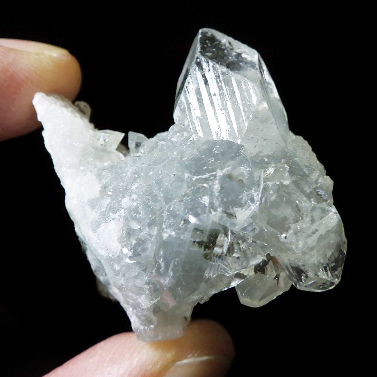 インド産のアポフィライト原石です。アポフィライトは、その透明感溢れる輝きと独特のピラミッド型の結晶構造が特徴の天然石です。高い波動と癒しの力を持つとされ、透明度が高い結晶の輝きは眺めるだけでピュアな気持ちにさせてくれます。