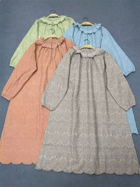 yq 2502 豪華全刺花柄 ロングチュニック ワンピース ゆったり 綿100% オシャレ フリーサイズ ナチュラル カラー3