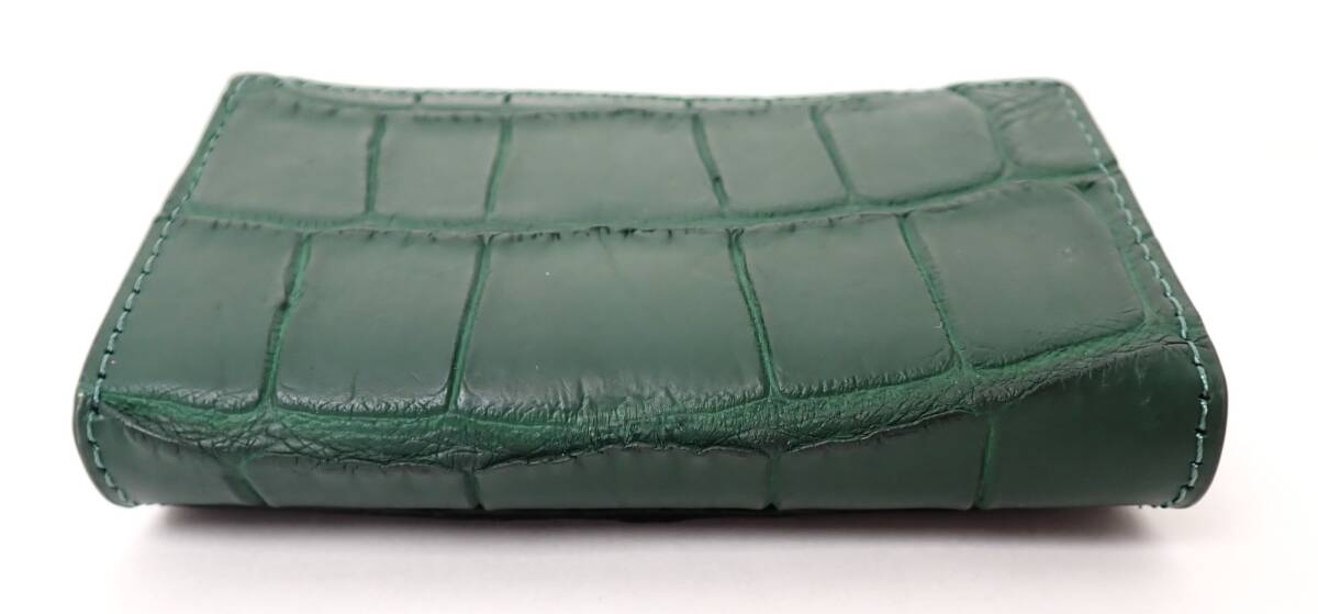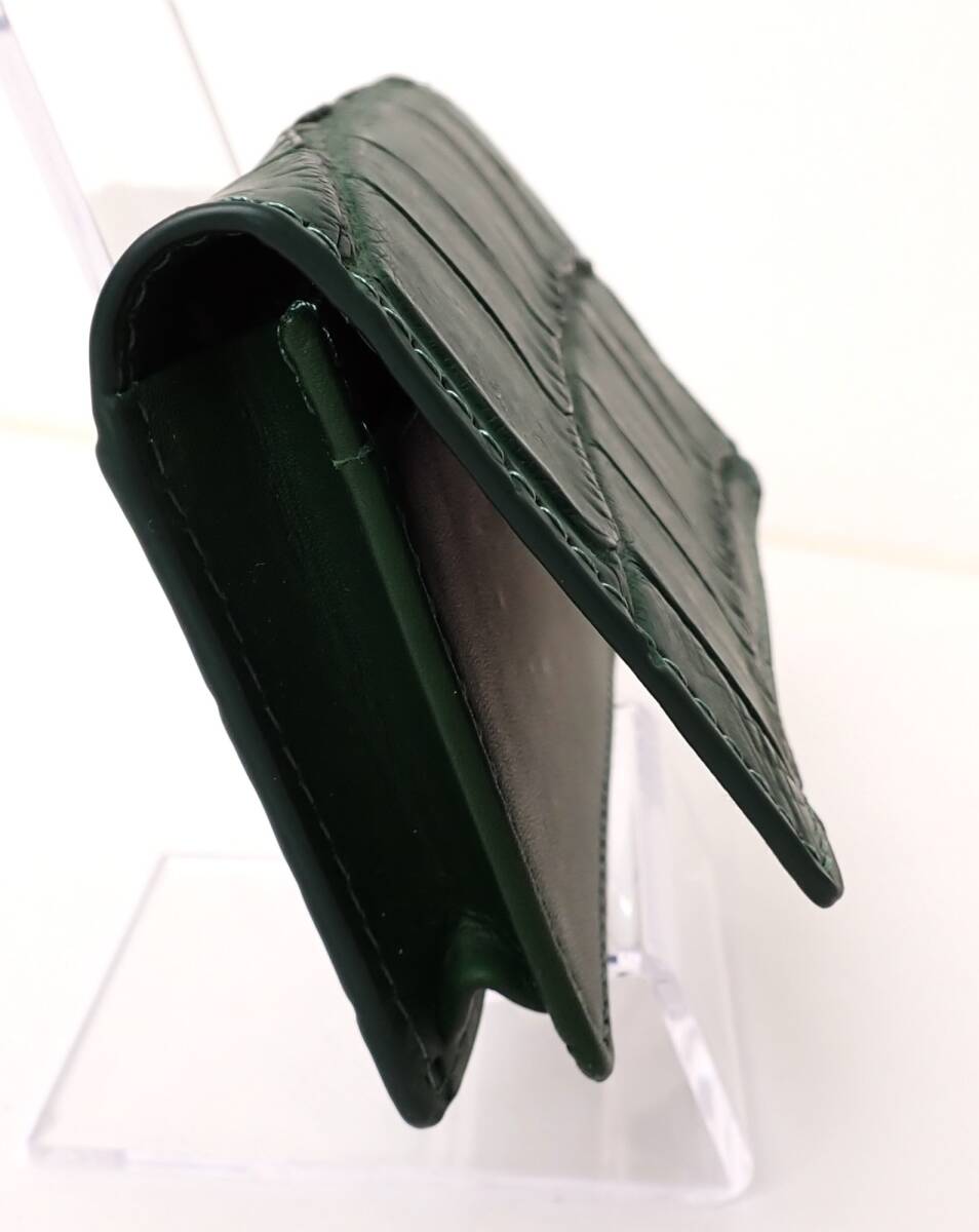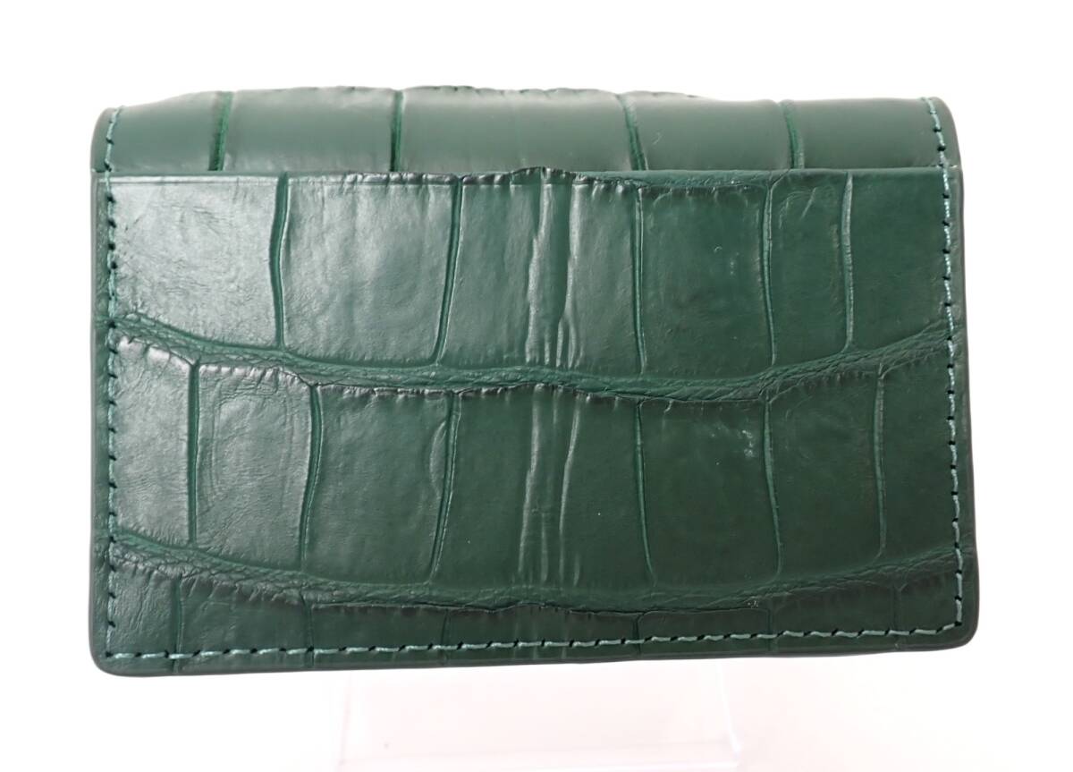 | コメント | 同様の在庫が複数ございますが、お写真の商品と同様のものをお送りいたします。お好みの柄をじっくりとご検討ください。この名刺入れに使われているクロコダイルレザーは特別ななめし加工が施されており、柔らかさと頑丈さを見事に兼ね備えています。その素材はまさにヘンローンの代名詞とも言える高品質で、美しい仕上がりが特徴です。デザインに関しては、スタイリッシュで洗練されており、ビジネスシーンにおいて高級感を演出するのに最適です。ダークグリーンという色合いは落ち着いた印象を与え、持つ人の品格を高めてくれます。また、コンパクトながら実用性も兼ね備え、多くの名刺を収納できるよう工夫されています。仕切りやポケットが内側に配置されていることが多いため、カード類を整理しやすいのも便利です。クロコダイルレザー独特の模様と光沢が、この名刺入れに高級感を加え、使い込むほどに馴染んで味わいが増すのも魅力の一つです。耐久性に優れているため、長く愛用できるアイテムです。こうした名刺入れは自分用としてはもちろん、箱も完備ですので特別な日の贈り物としても非常におすすめです。 | |