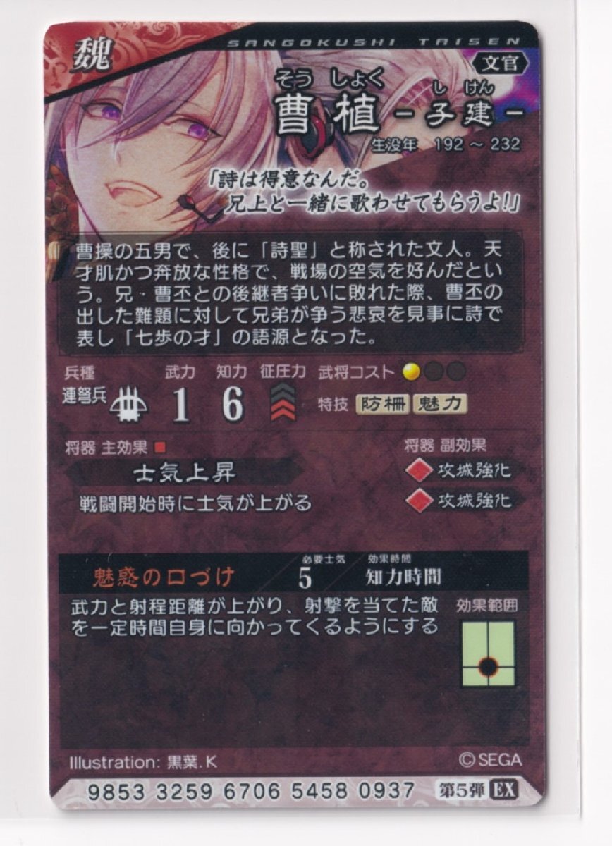 三国志大戦6 魏 5弾 EX(UC) 曹植 魅惑の口づけ 士気上昇 コレクション用 [3子02]