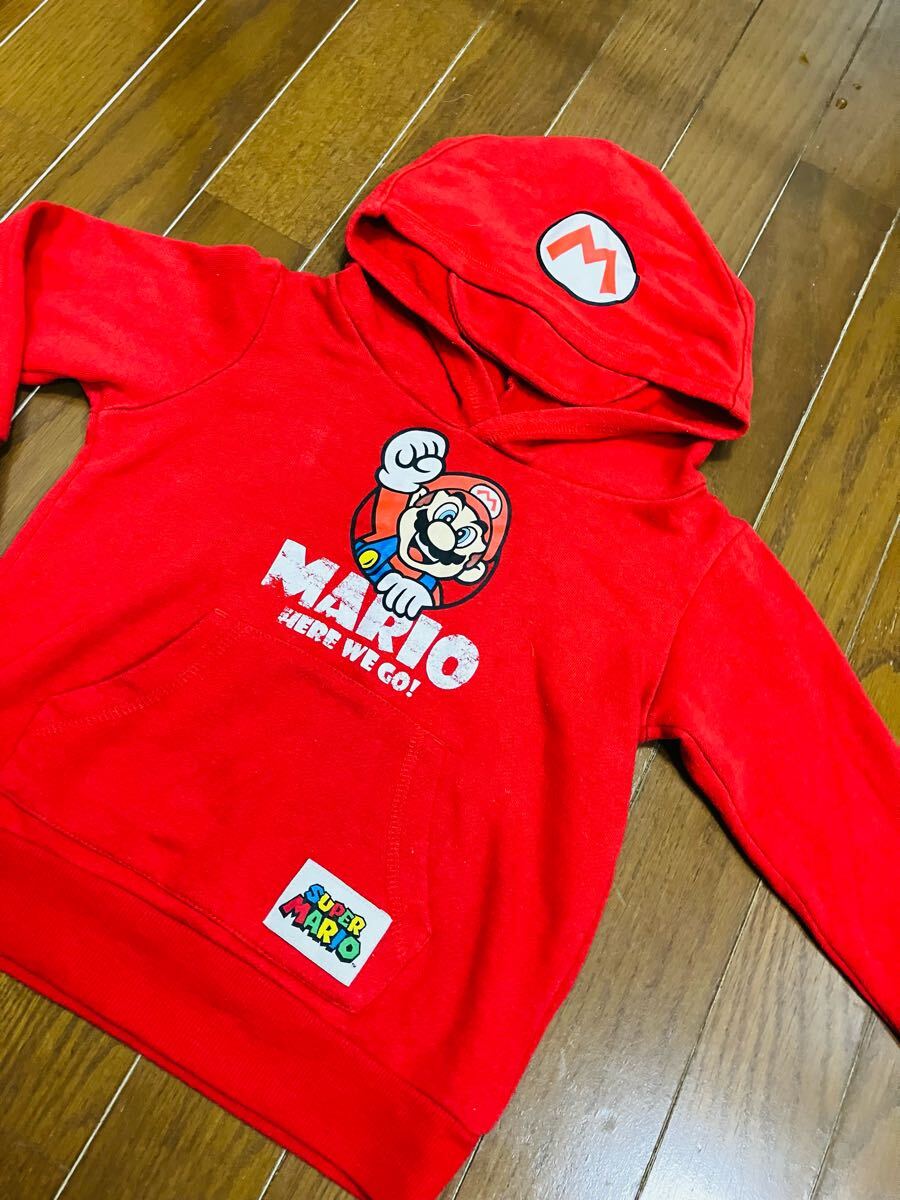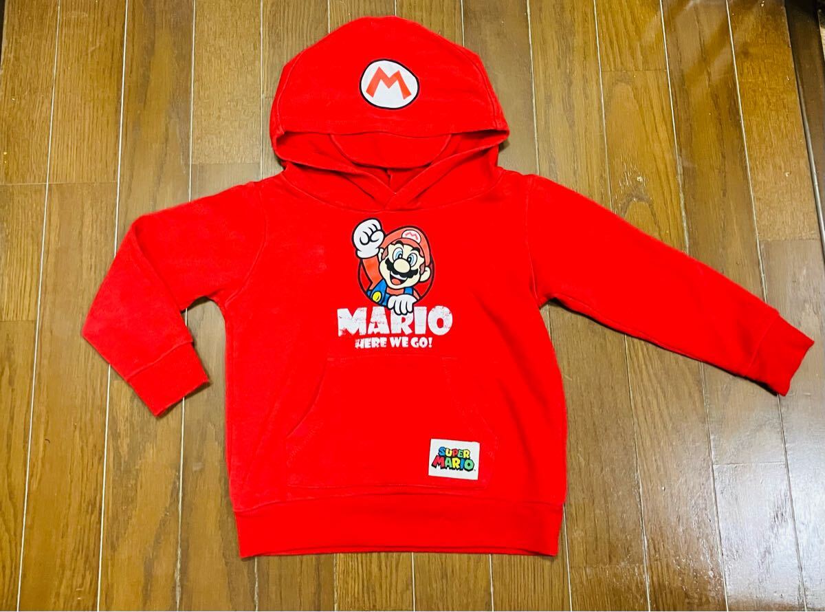 マリオのなりきり着ぐるみフード付きパーカー110cmです☆裏起毛で暖かいパーカーです☆フードはマリオの帽子になっており、マリオ好きのお子様やハロウィンの仮装に最適です☆男の子でも女の子でも着用できる色やデザインとなっております☆記名ありません☆同じものを別に出品致しておりますので、お友達やご兄弟で双子コーデが楽しめます☆返品、クレームはお受けできません☆この他にも子供服などいろんなものを多数出品致しておりますので、よろしかったらご覧下さい^ - ^