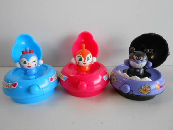 1.パンこうじょう&アンパンマン 2.バイキンじょう&ばいきんまん 3.モグリン&かびるんるん 4.アンパンマンごう&めいけんチーズ 5.ドキンUFO&ドキンちゃん 6.コキンUFO&コキンちゃん |